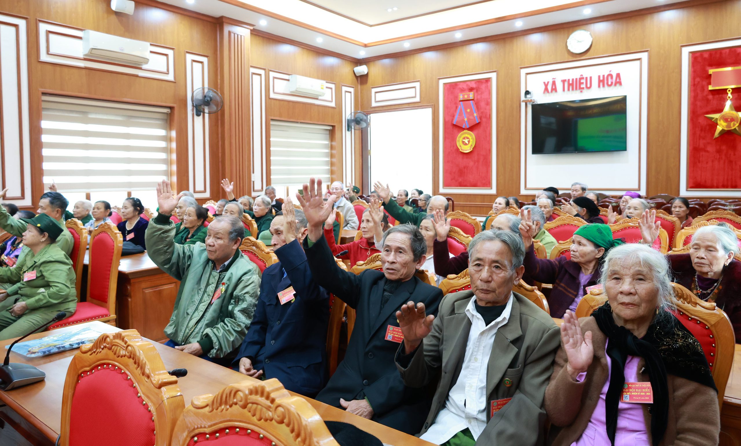 Đại hội đã tiến hành bầu Ban Chấp hành Hội Cựu TNXP xã Thiệu Hóa khóa I, nhiệm kỳ 2026 – 2031 gồm 17 đồng chí và Ủy ban Kiểm tra gồm 3 đồng chí, đảm bảo tiêu chuẩn và cơ cấu theo quy định.