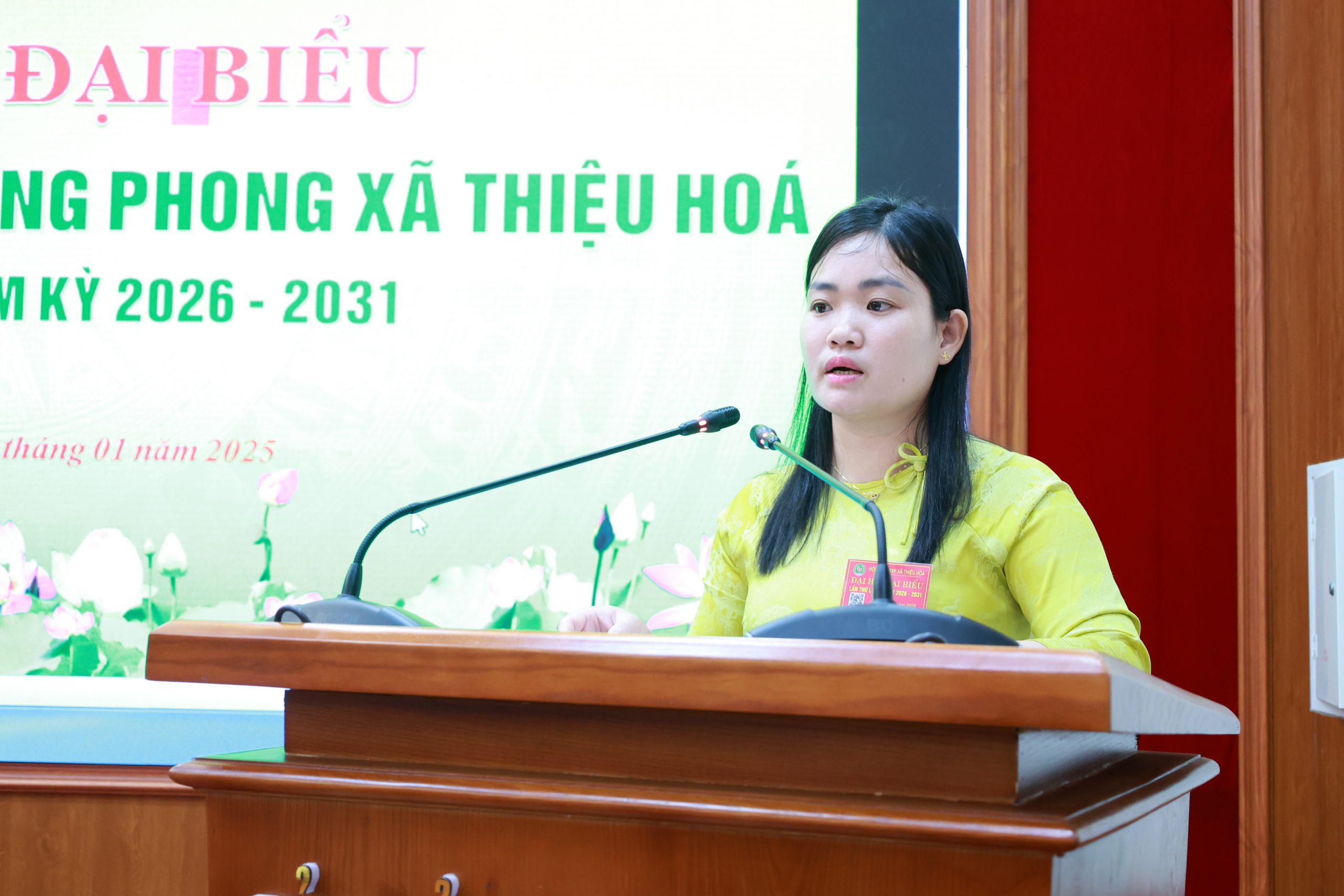 Đồng chí Nguyễn Thị Thắm trình bày báo cáp tại Đại hội.
