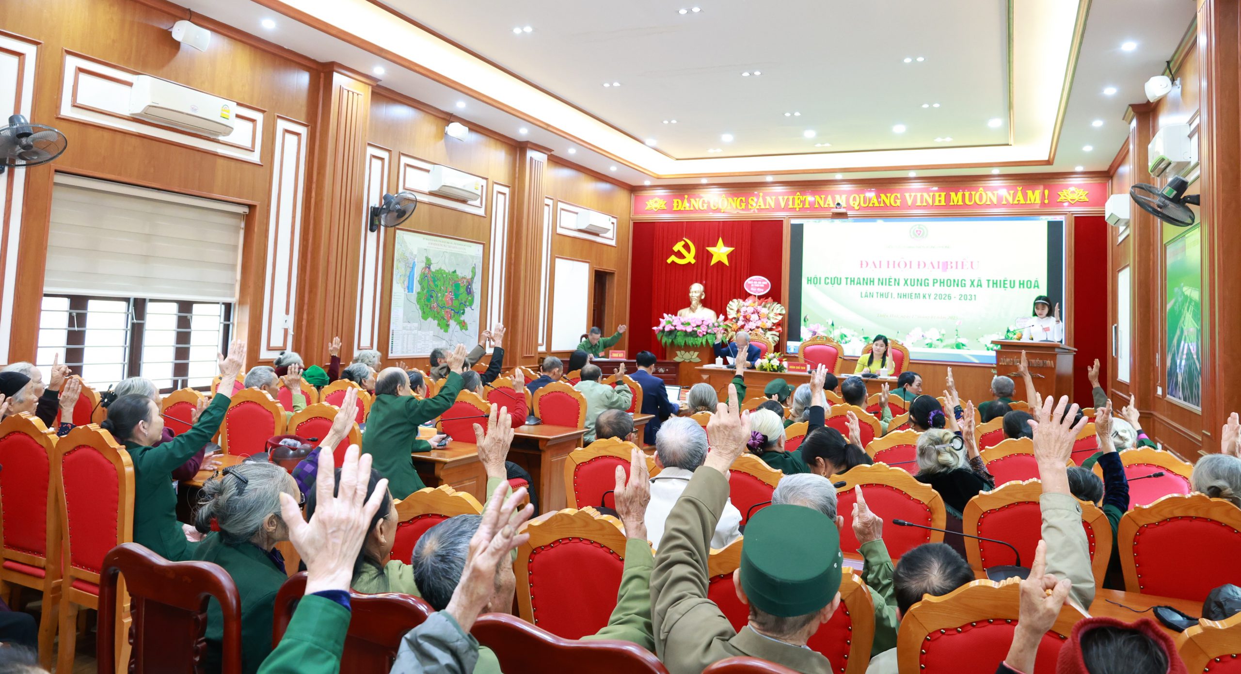 Đại hội đã tiến hành bầu Ban Chấp hành Hội Cựu TNXP xã Thiệu Hóa khóa I, nhiệm kỳ 2026 – 2031 gồm 17 đồng chí và Ủy ban Kiểm tra gồm 3 đồng chí, đảm bảo tiêu chuẩn và cơ cấu theo quy định.