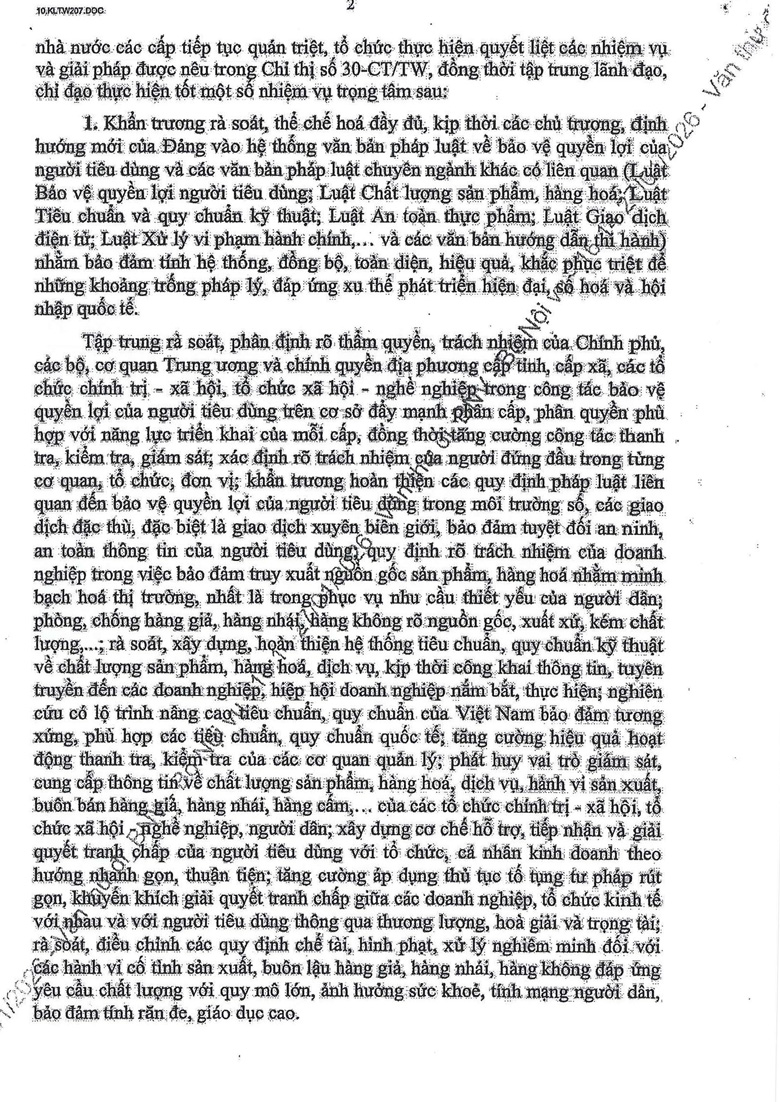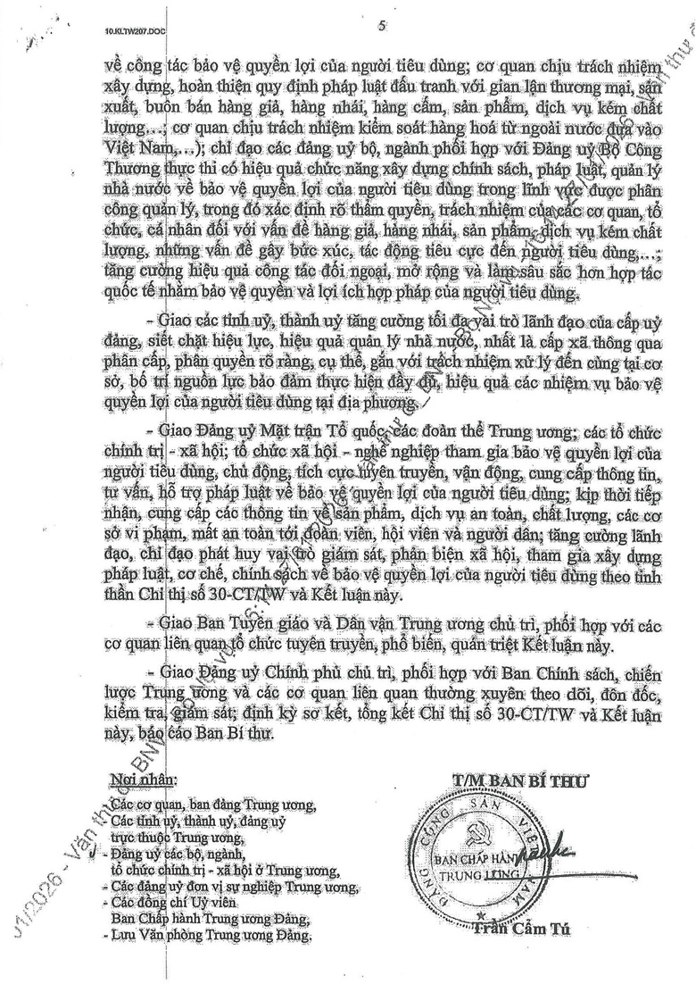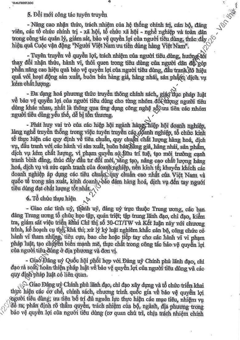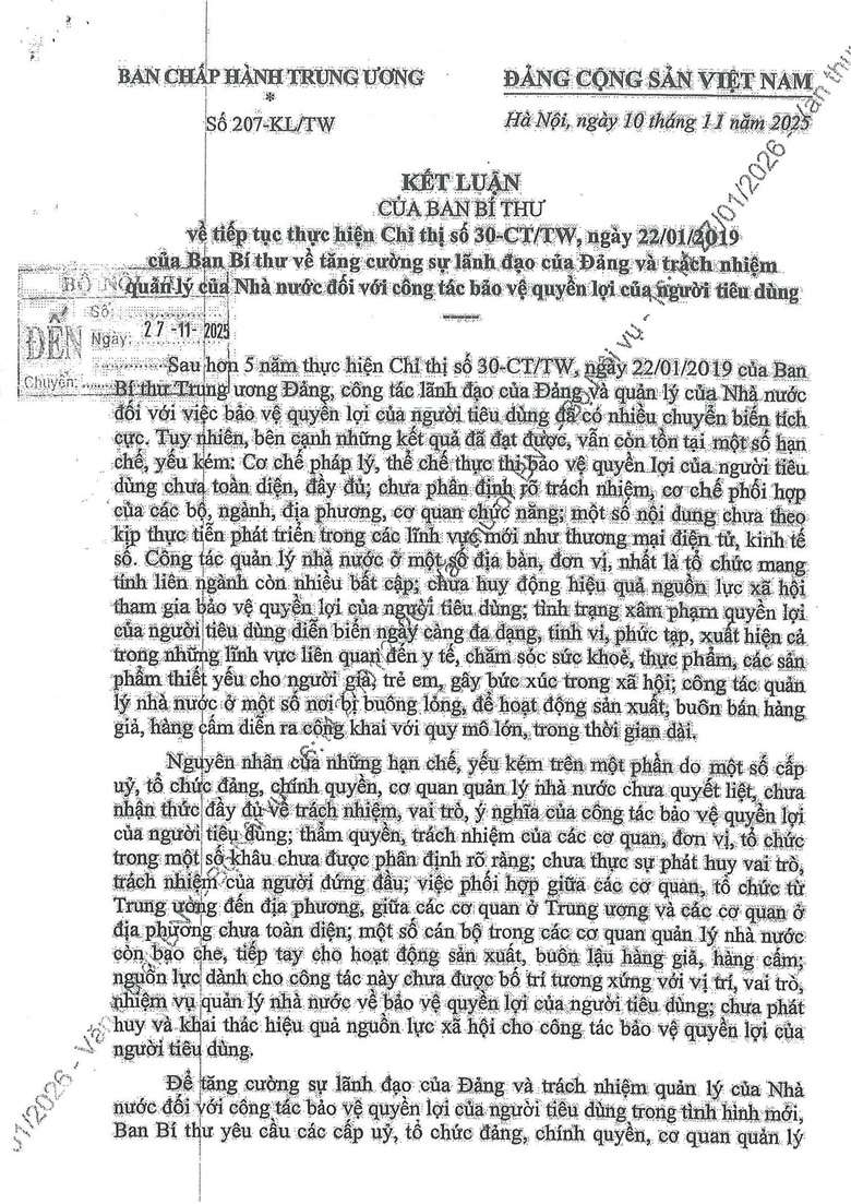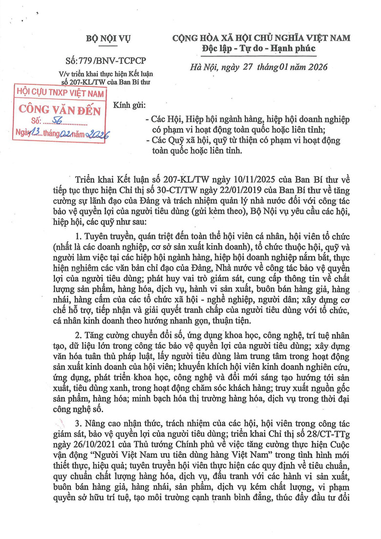 Công văn 779 triển khai thực hiện Kết luận số 207-KL/TW của Ban Bí thư
