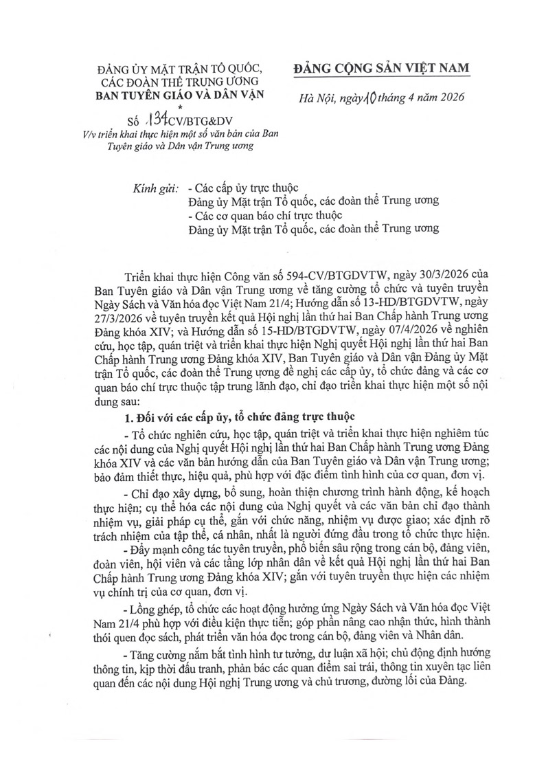 - Công văn 126 định hướng công tác tuyên truyền tháng 4/2026