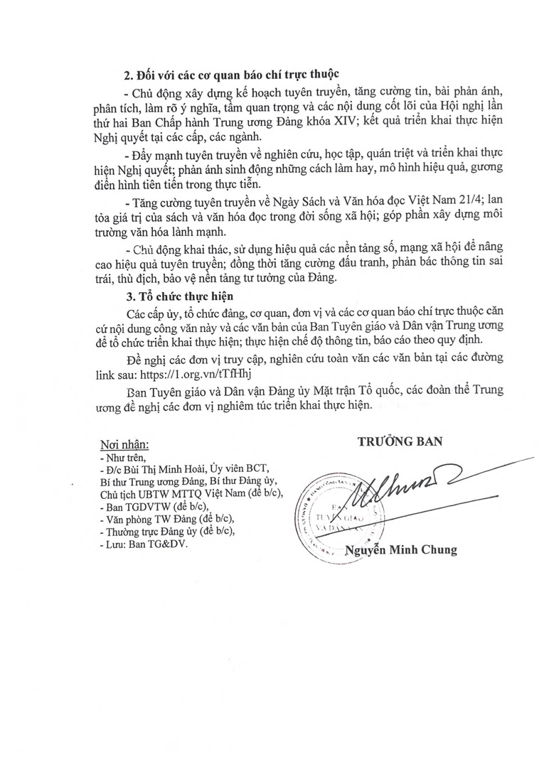 - Hướng dẫn 32: tuyên truyền thực hiện Nghị quyết số 80-NQ/TW về phát triển văn hóa Việt Nam