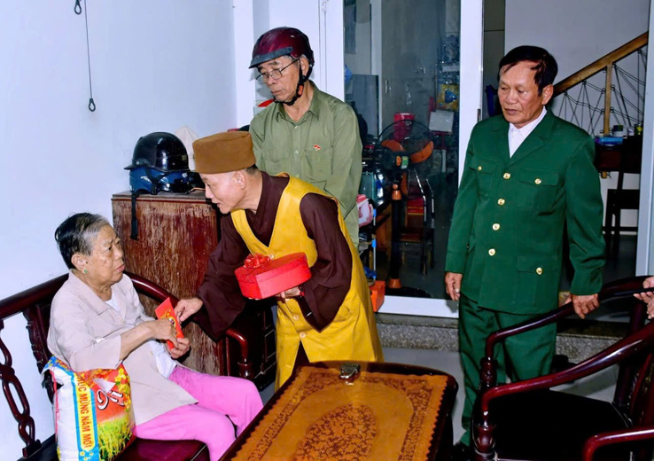 Đặc biệt, nhằm đảm bảo không hội viên nào bị bỏ lại phía sau, chiều cùng ngày, Thượng tọa Thích Thông Quang đã trực tiếp đến tận nhà thăm hỏi, trao quà cho những hội viên đau ốm, già yếu không thể đến tham dự trực tiếp tại hội trường (ảnh dưới).
