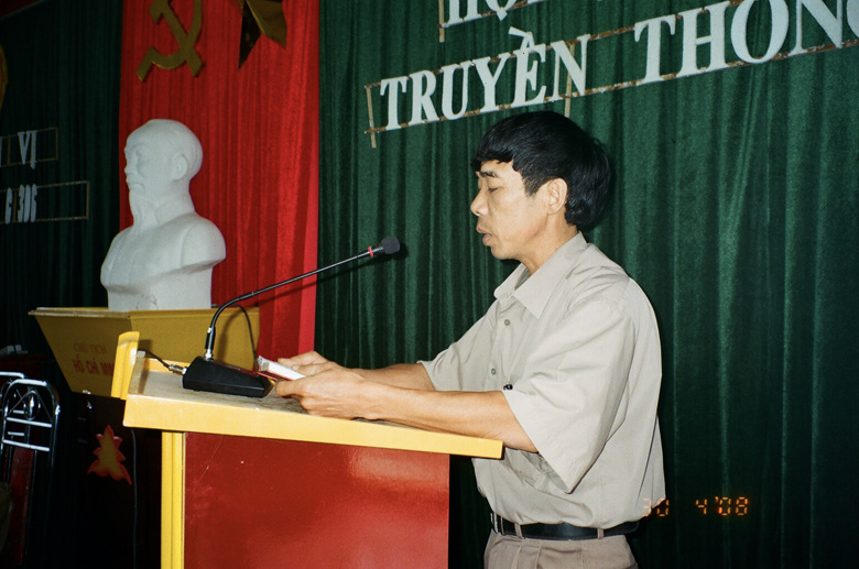 Chủ tịch Hội Cựu TNXP huyện Thiệu Hóa Nguyễn Văn Minh phát biểu.
