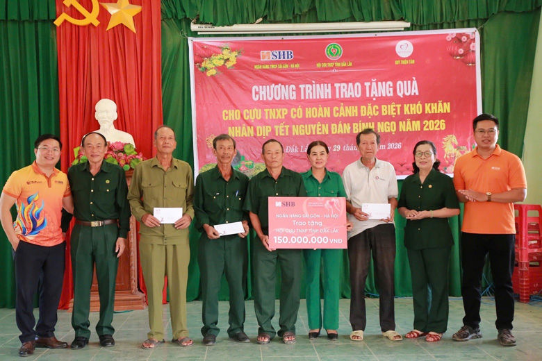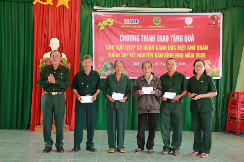 Từ ngày 29/01 đến ngày 06/02/2026, Hội Cựu TNXP tỉnh Đắk Lắk đã tích cực vận động các nguồn lực xã hội hóa, tổ chức thăm hỏi và trao tặng 360 suất quà Tết với tổng trị giá 184 triệu đồng.