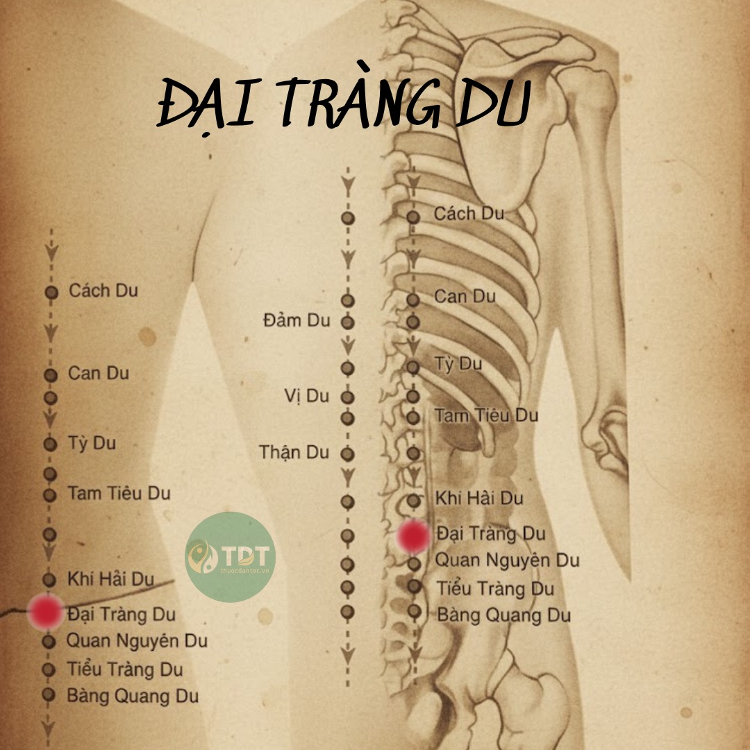 Dưới gai đốt sống thắt lưng 4, đo ngang 1.5 thốn (khoảng 2 ngón tay). |