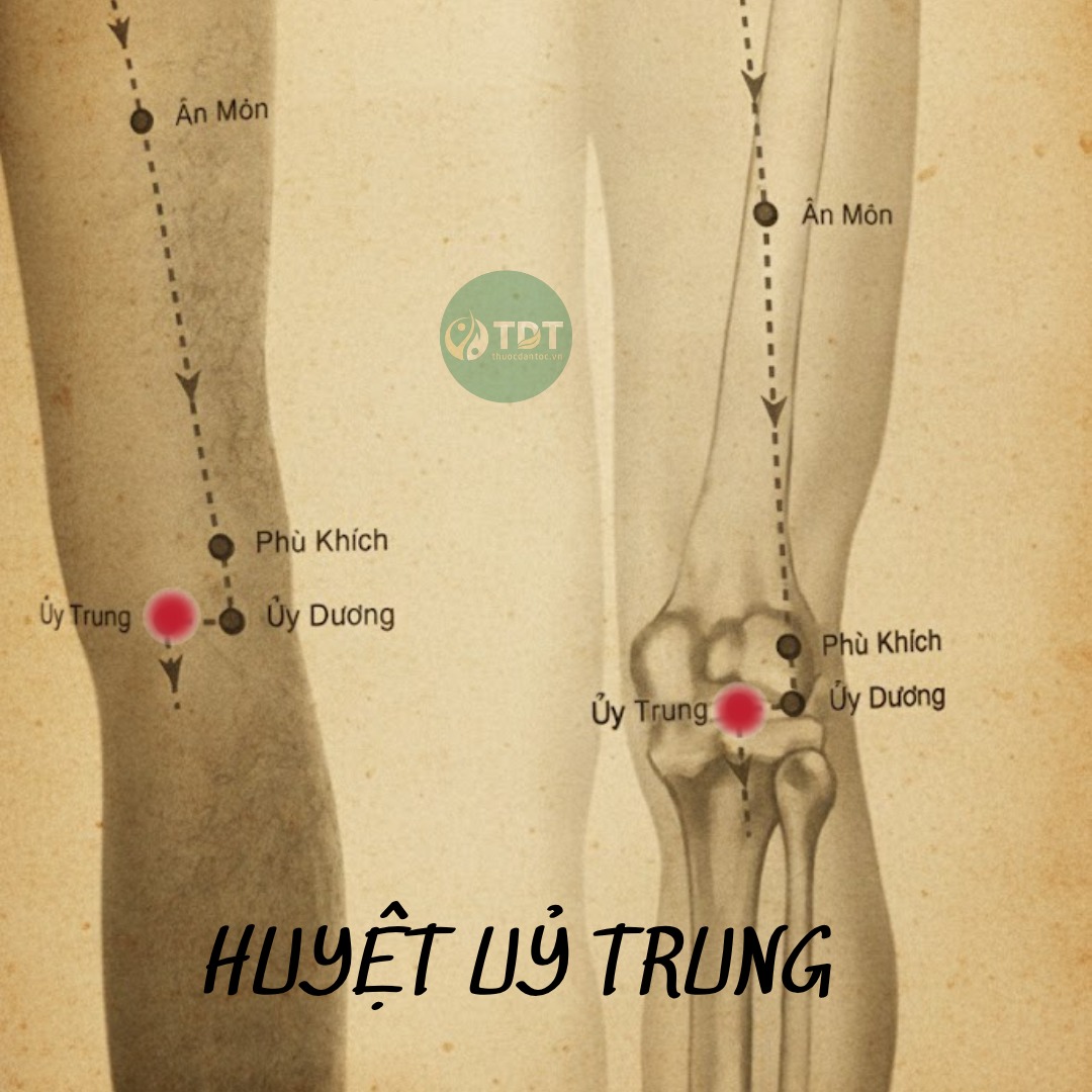 - Bước 2 (Chi dưới): Dùng ngón tay cái ấn huyệt ỦY TRUNG 30 lần, với lực vừa phải.