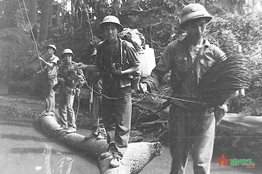 Bộ đội Trung đoàn 575, Quân khu 5 bảo đảm thông tin tại Campuchia, năm 1984. Ảnh internet