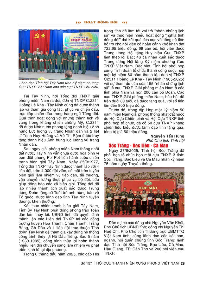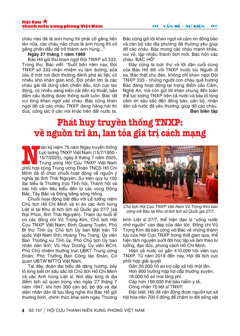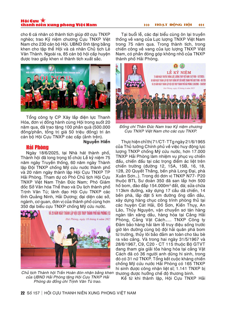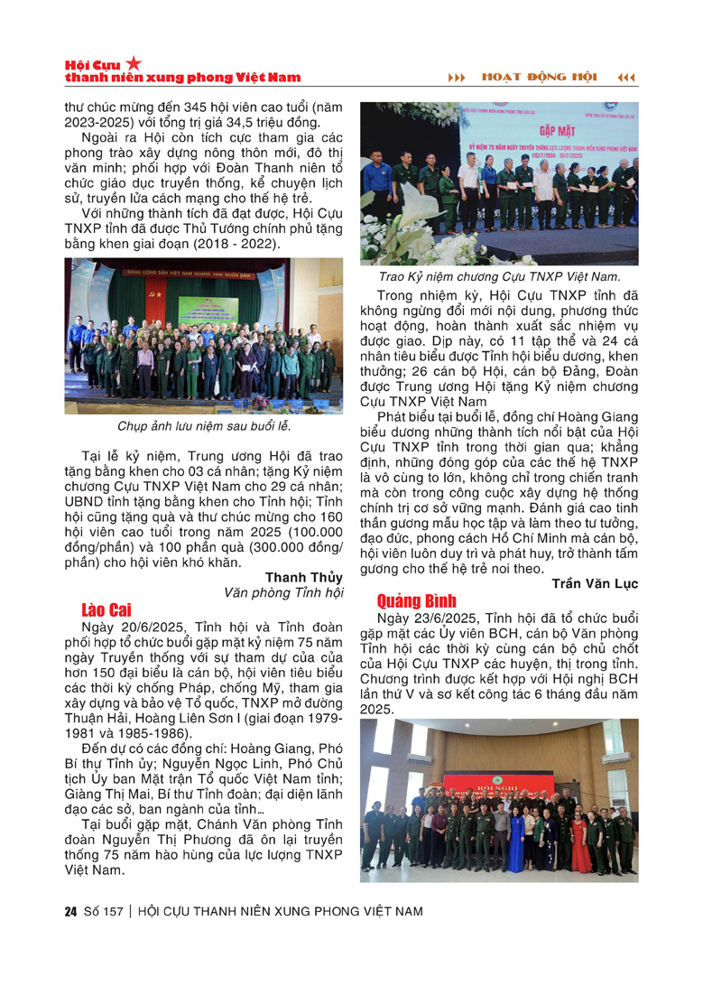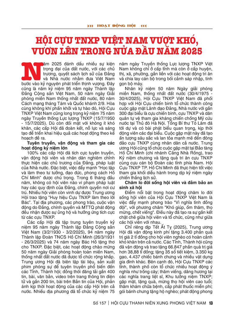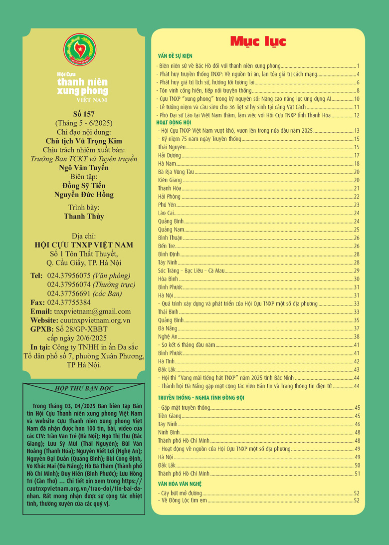 Bản tin Hội Cựu thanh niên xung phong Việt Nam số 157 (tháng 05+06/2025)