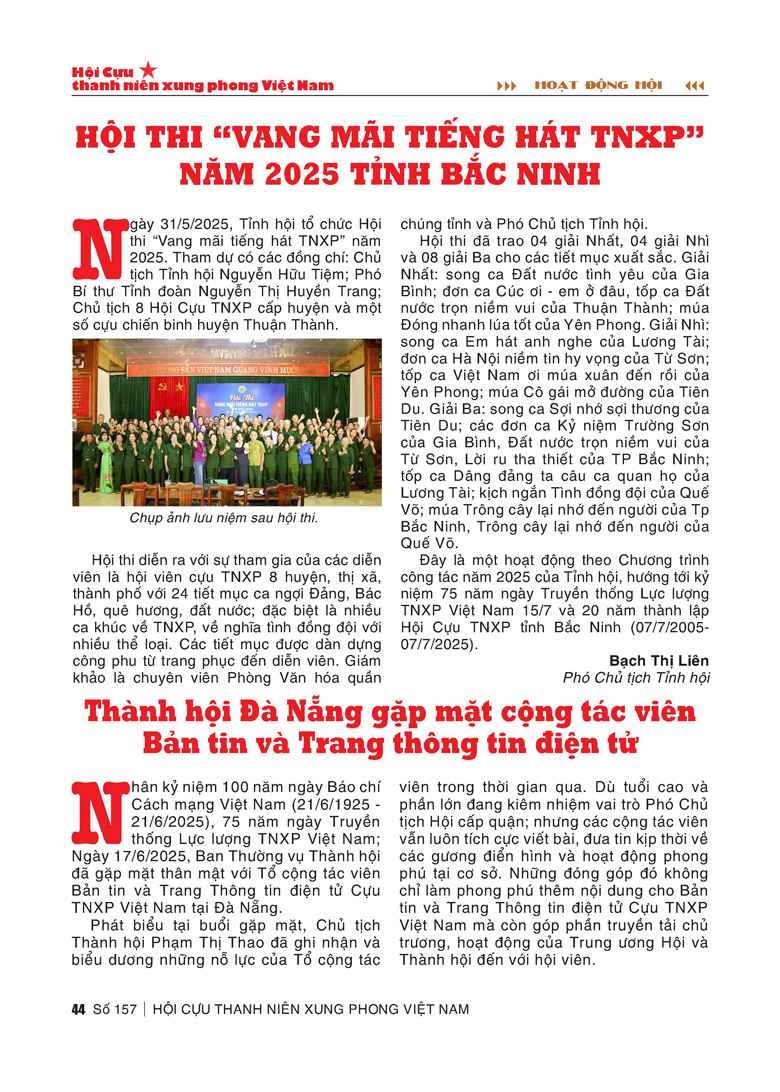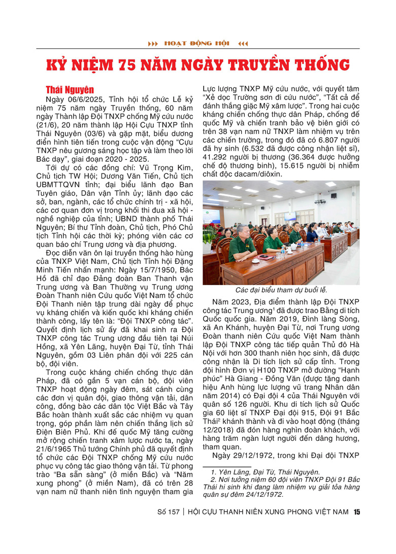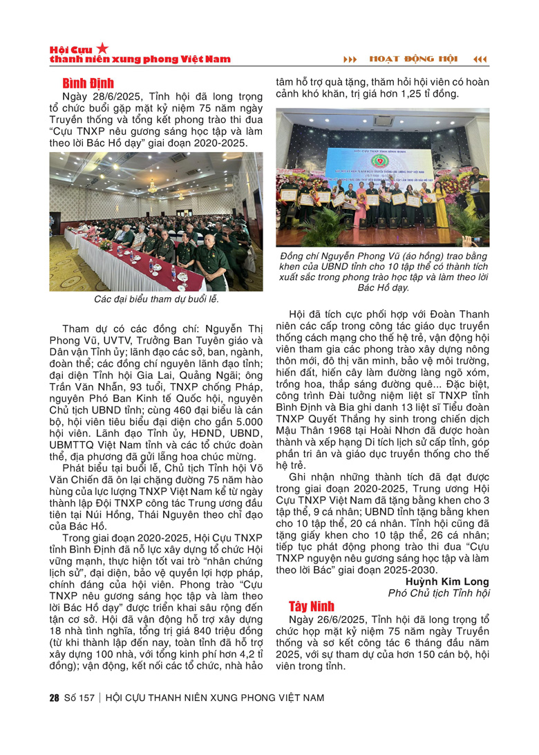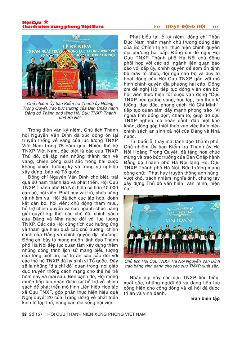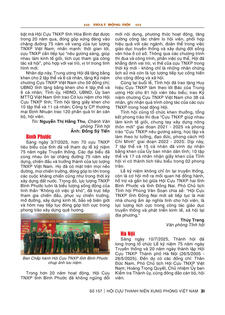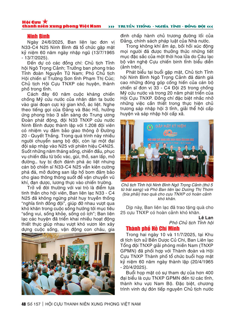 Bản tin Hội Cựu thanh niên xung phong Việt Nam số 157 (tháng 05+06/2025)