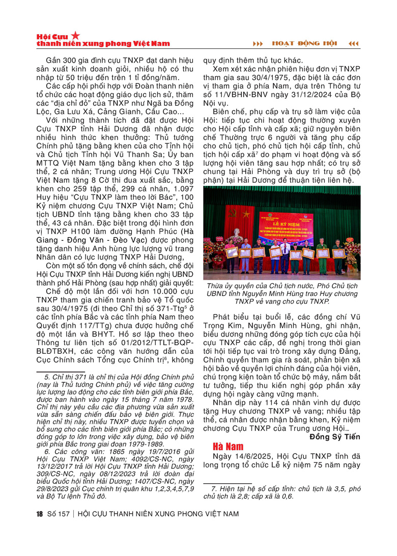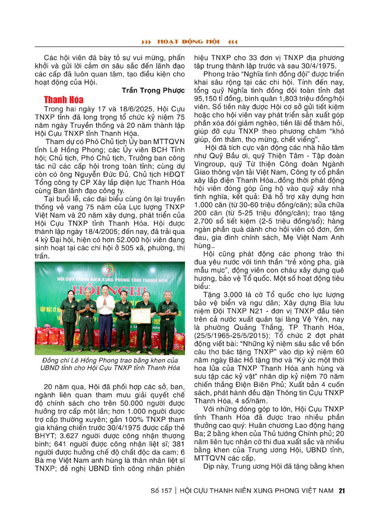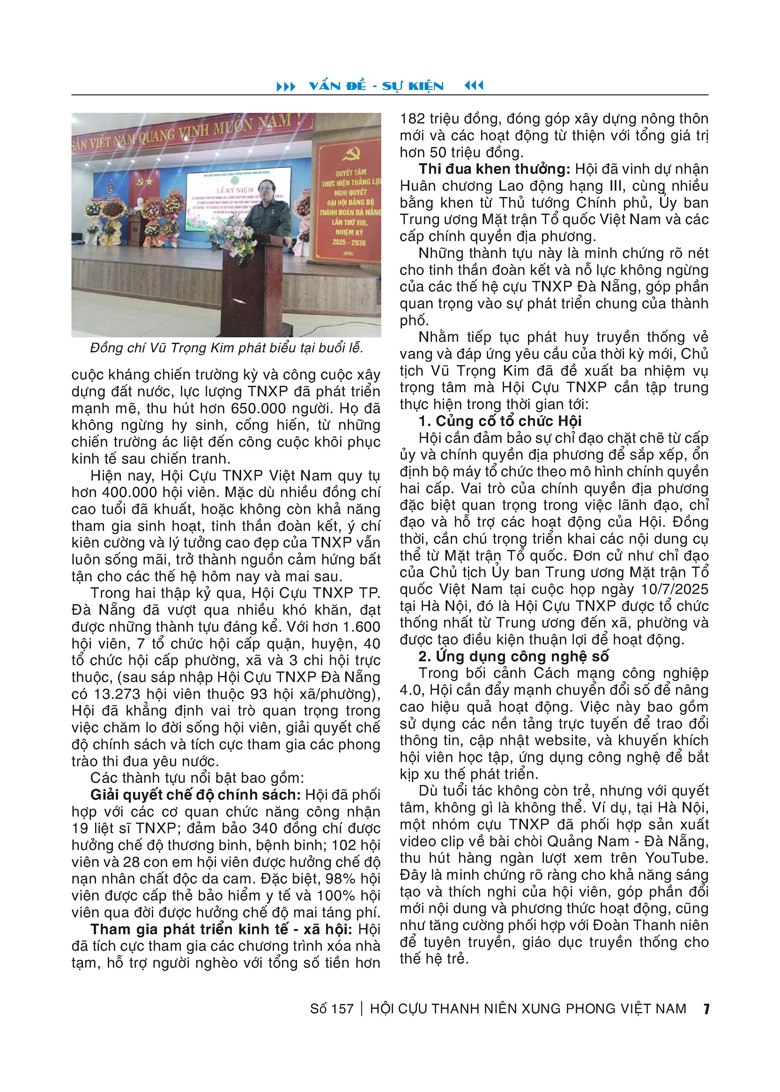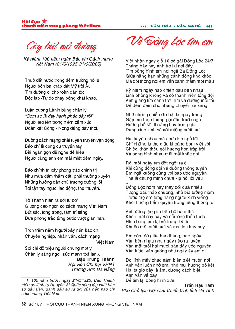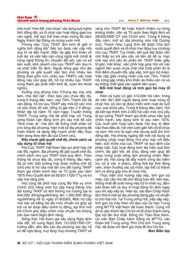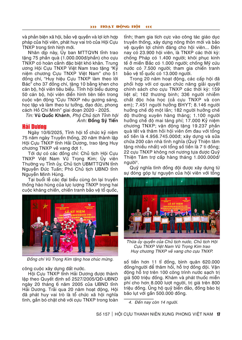 Bản tin Hội Cựu thanh niên xung phong Việt Nam số 157 (tháng 05+06/2025)