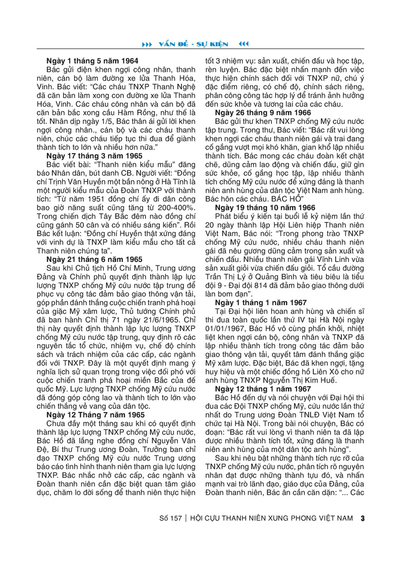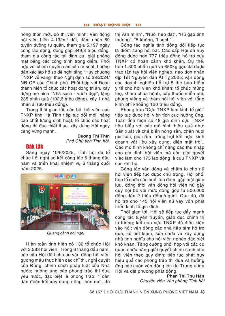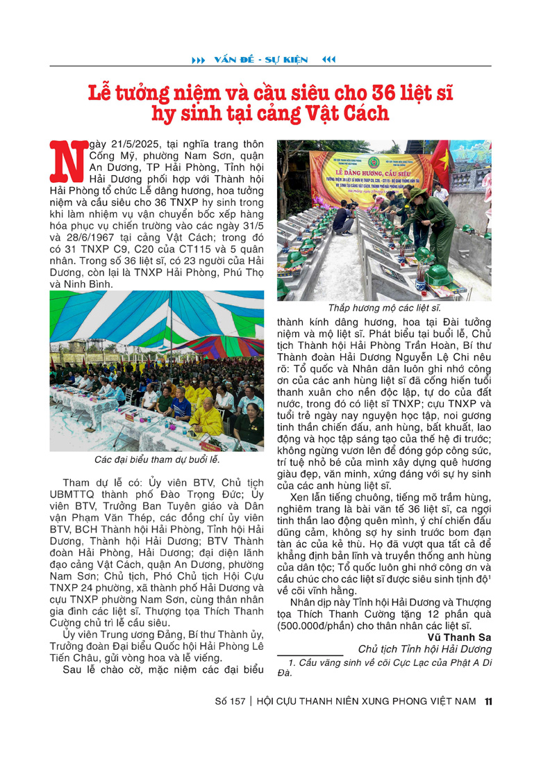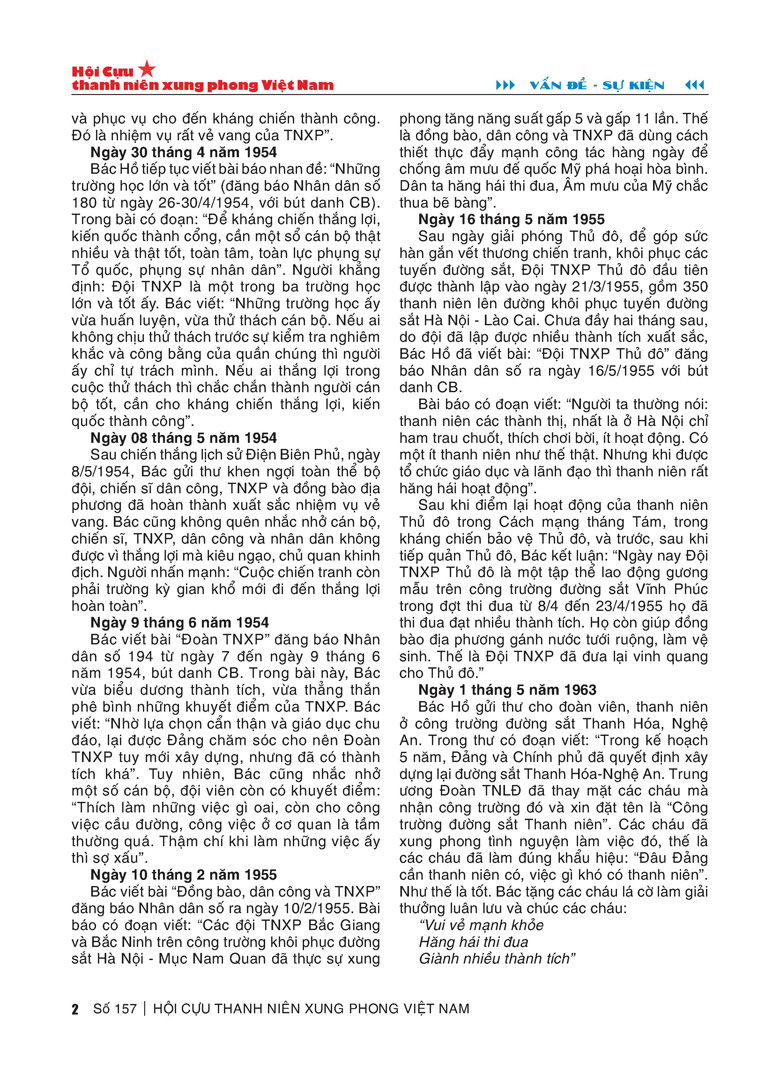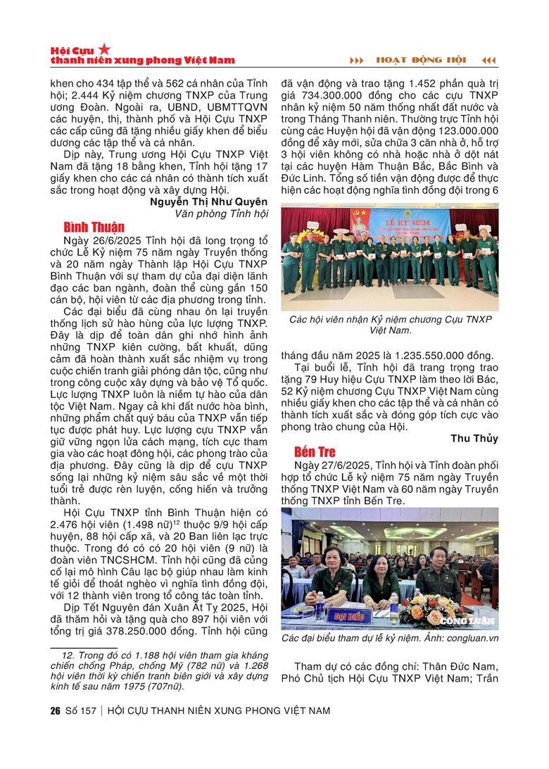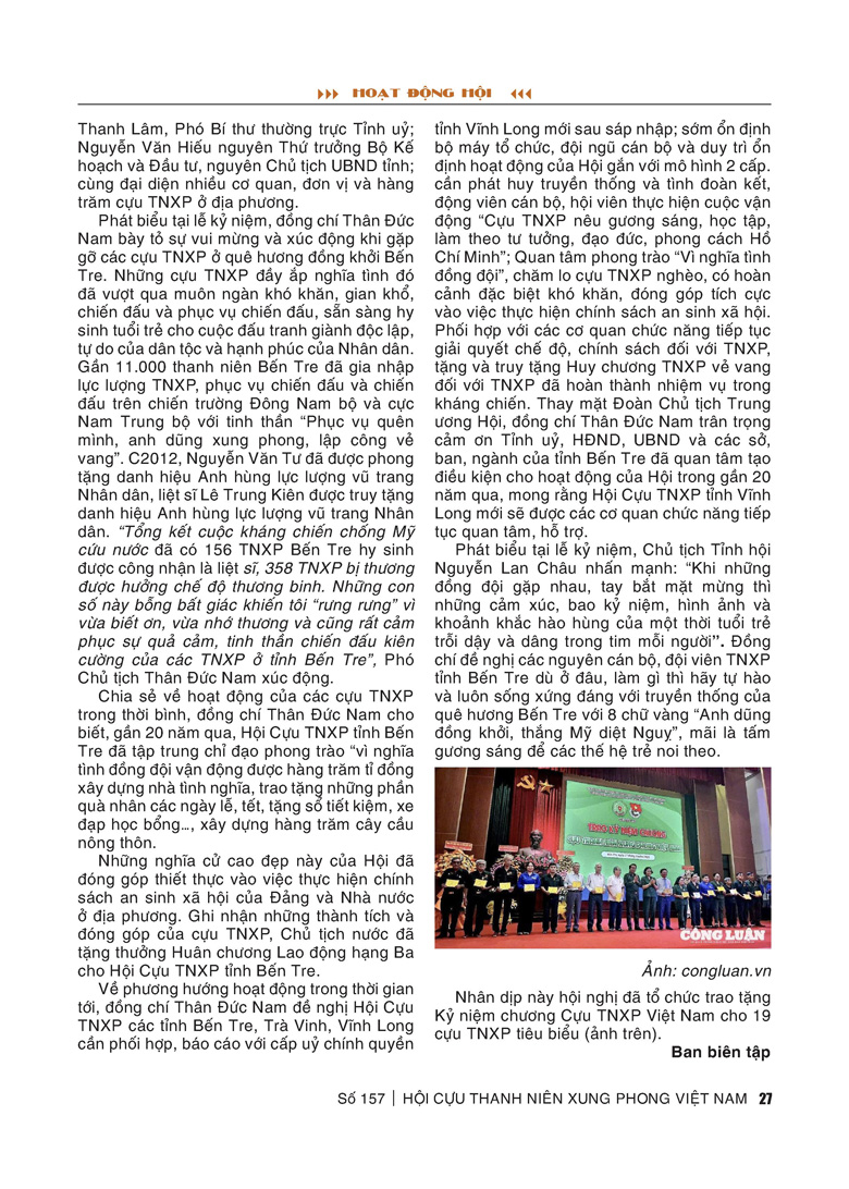 Bản tin Hội Cựu thanh niên xung phong Việt Nam số 157 (tháng 05+06/2025)