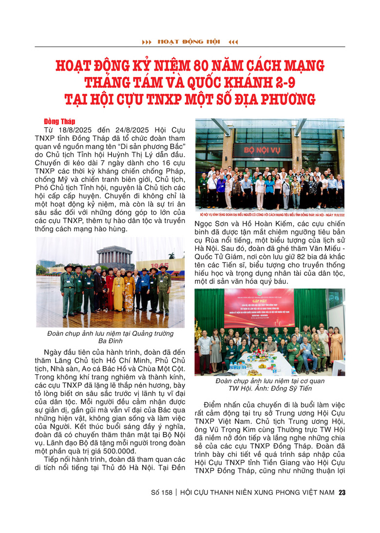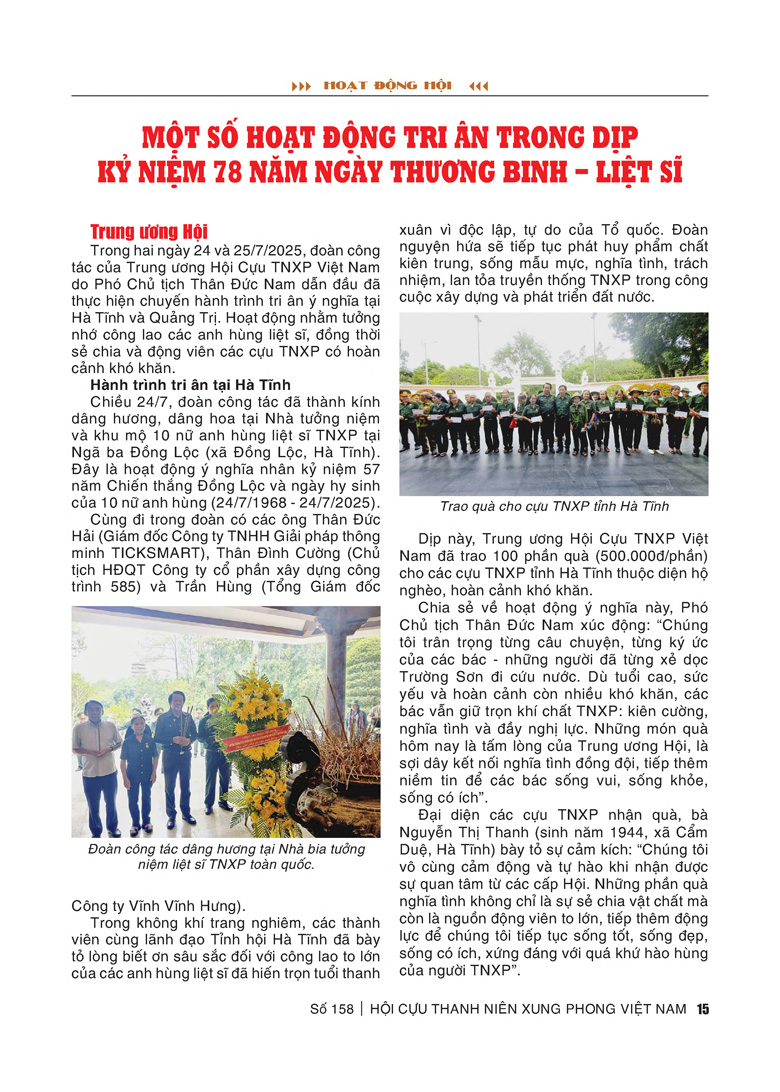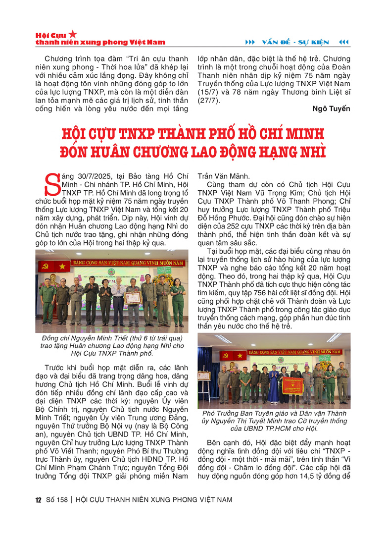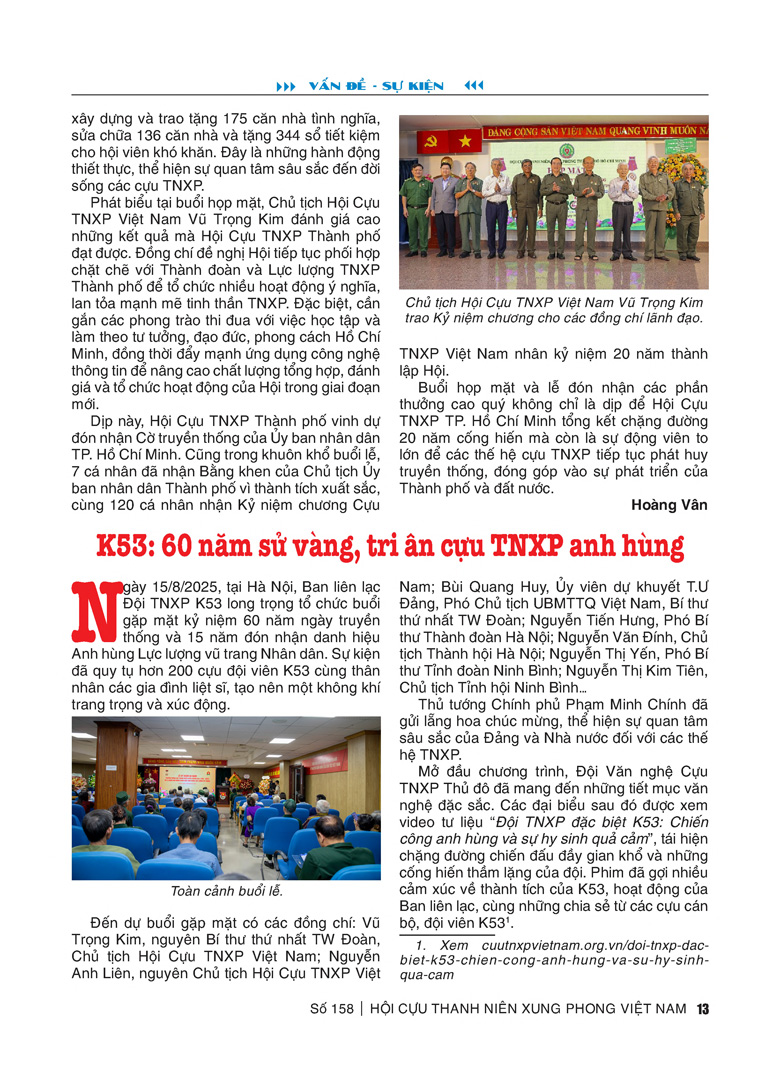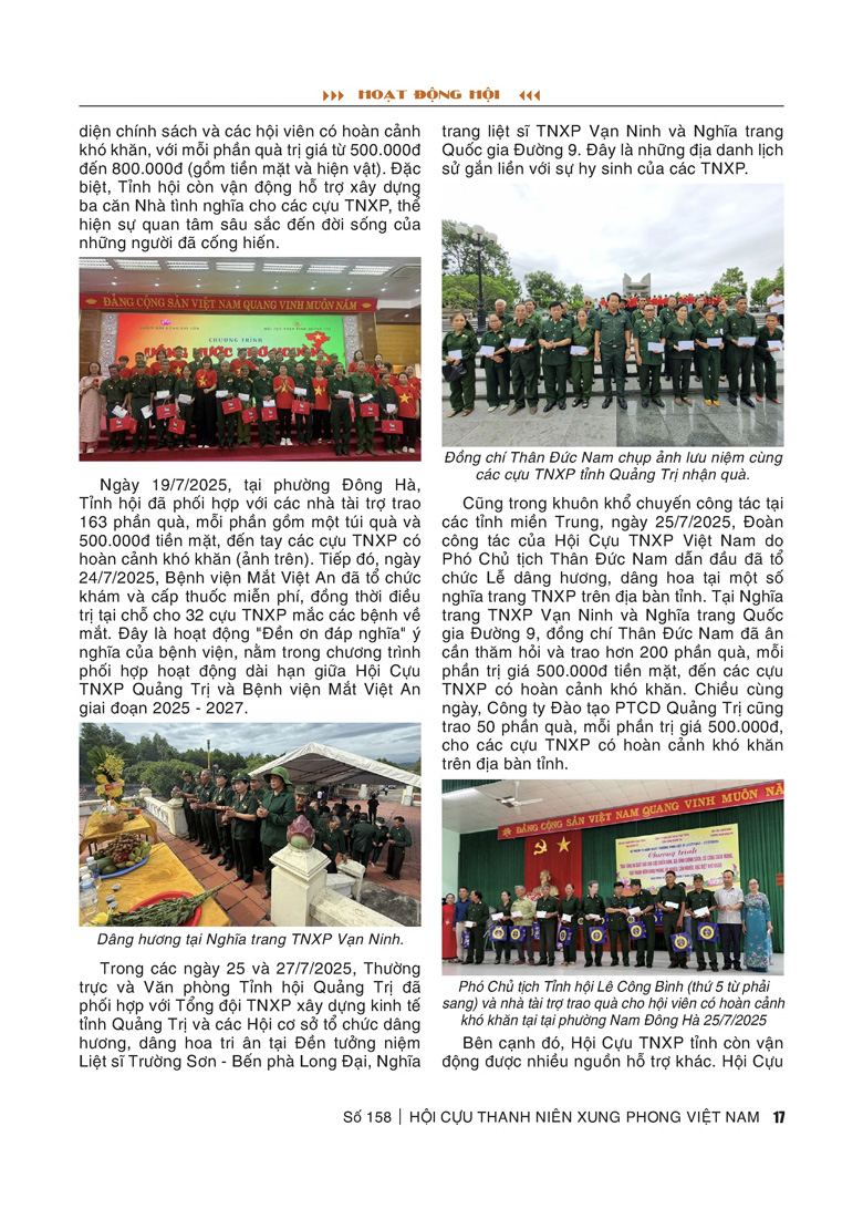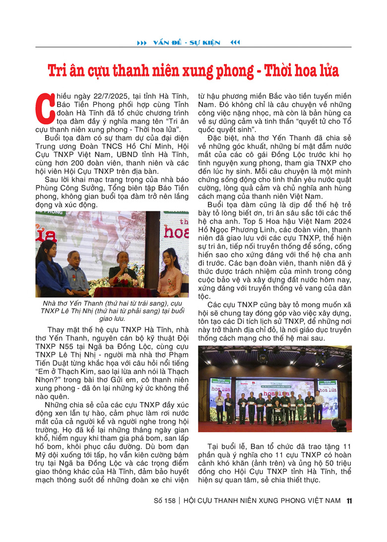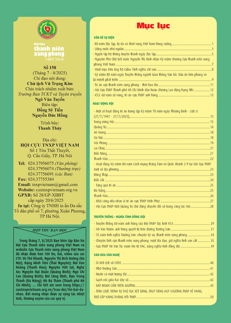 Bản tin Hội Cựu thanh niên xung phong Việt Nam số 158 (tháng 07+08/2025)