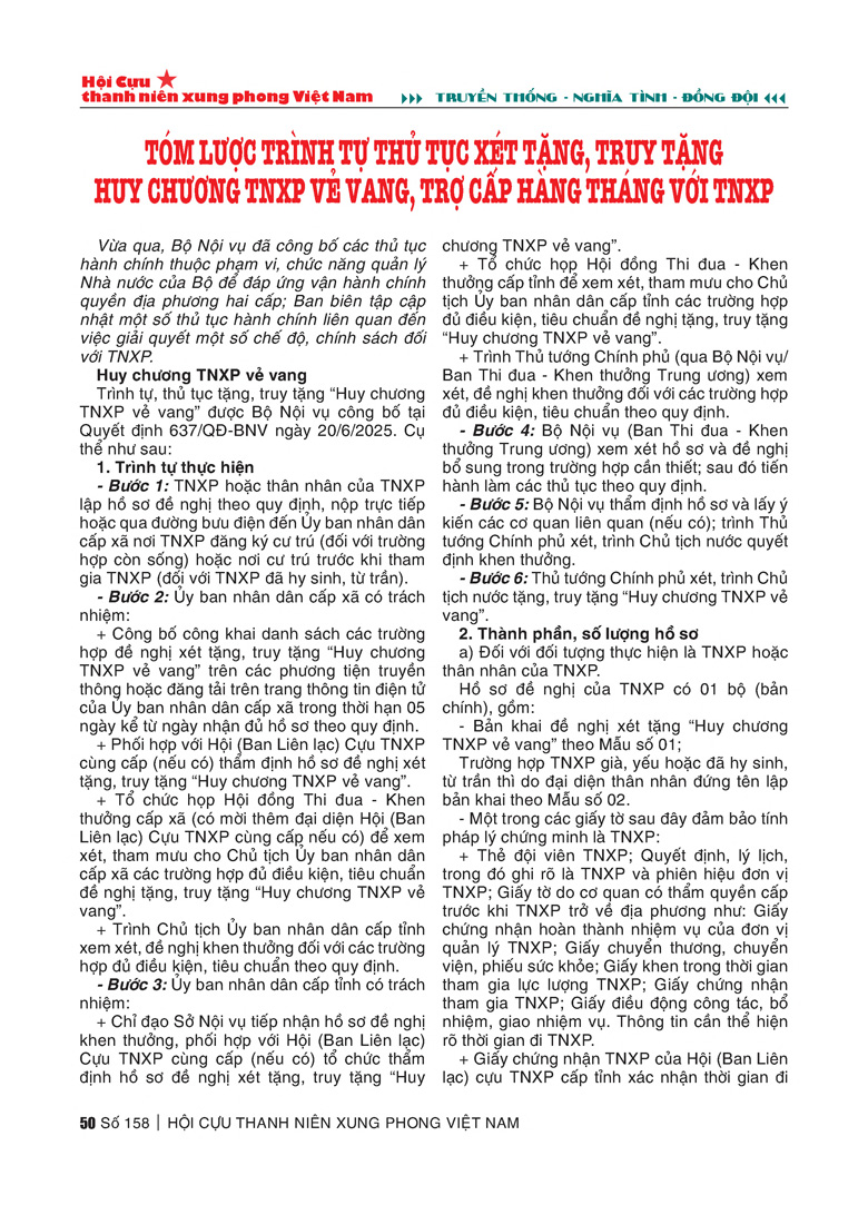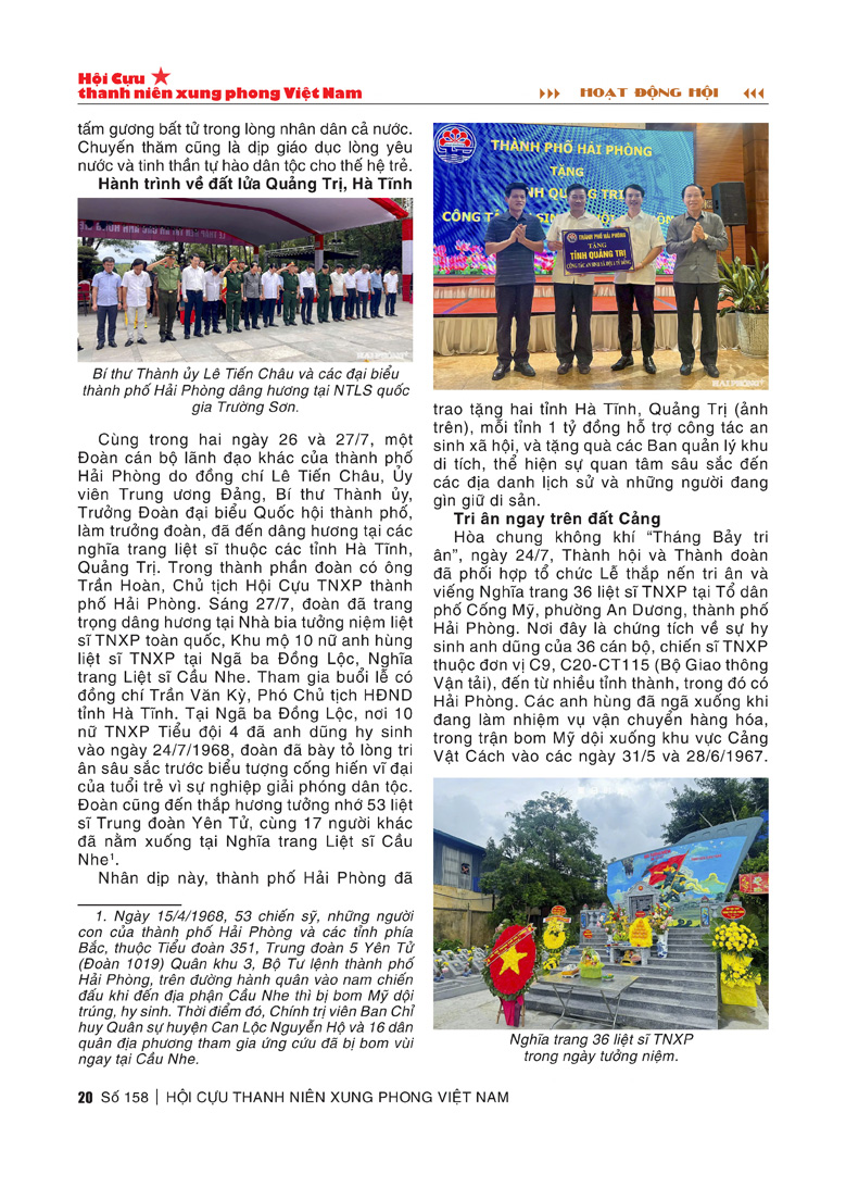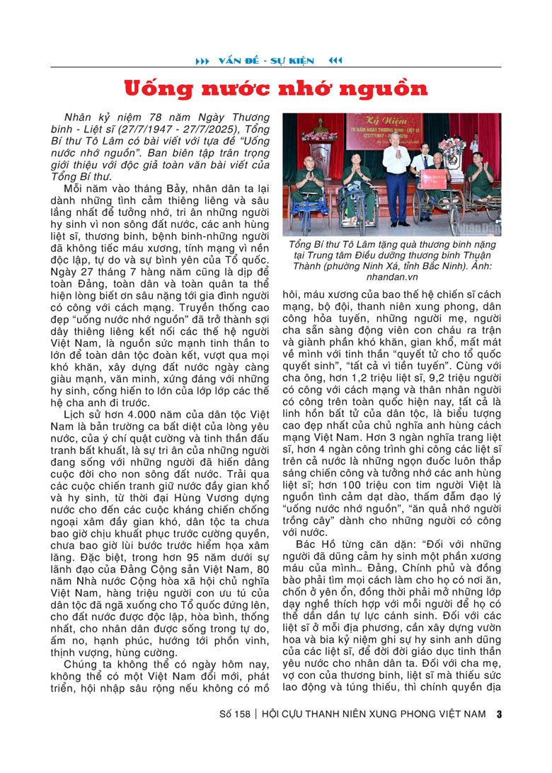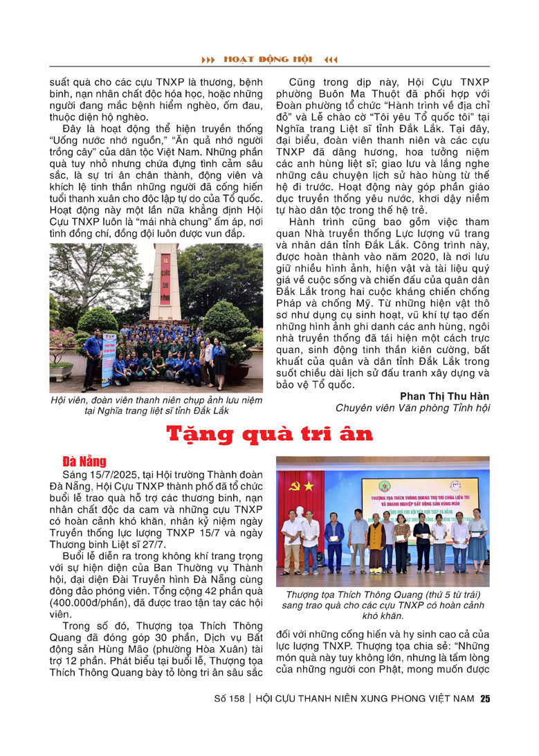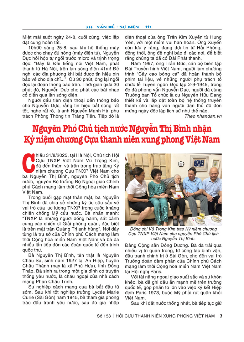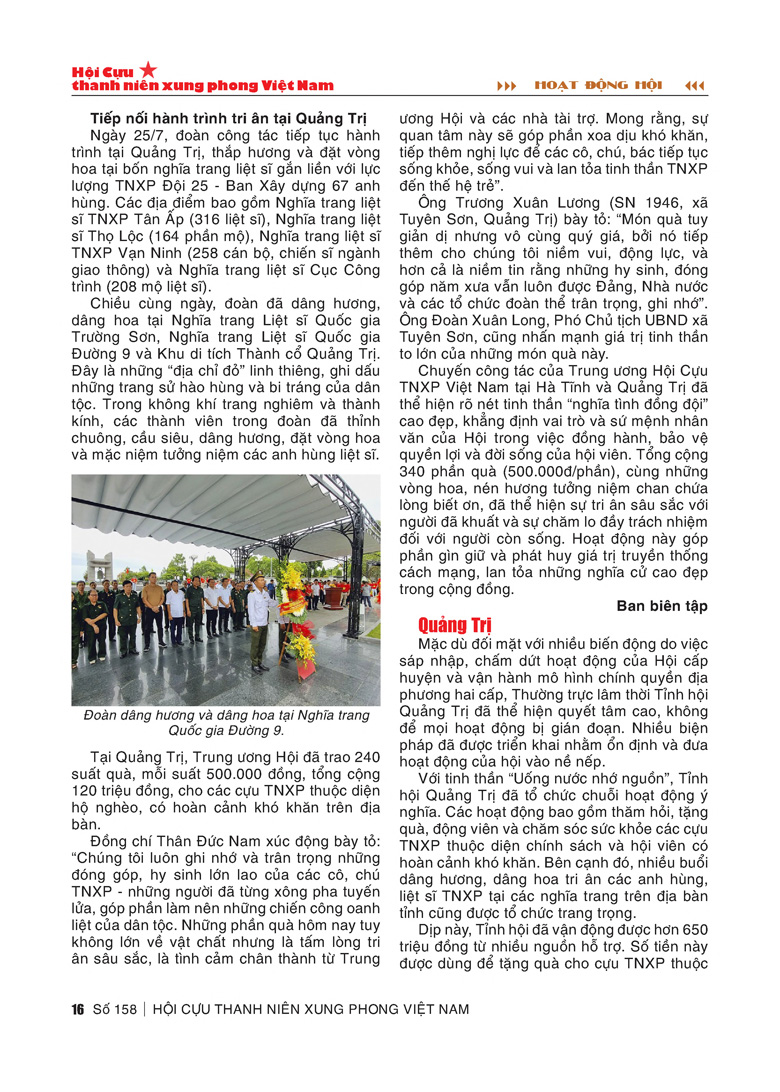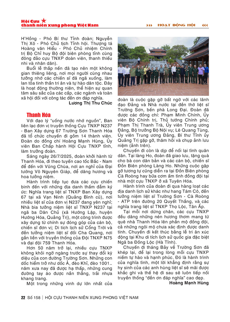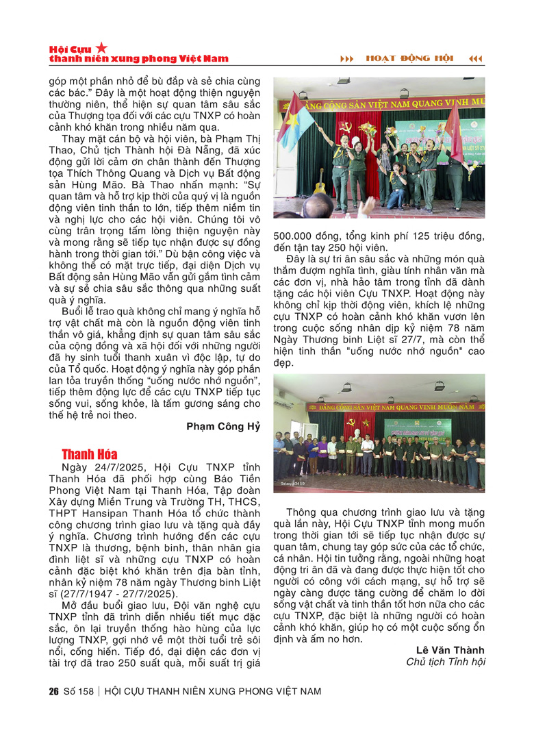 Bản tin Hội Cựu thanh niên xung phong Việt Nam số 158 (tháng 07+08/2025)