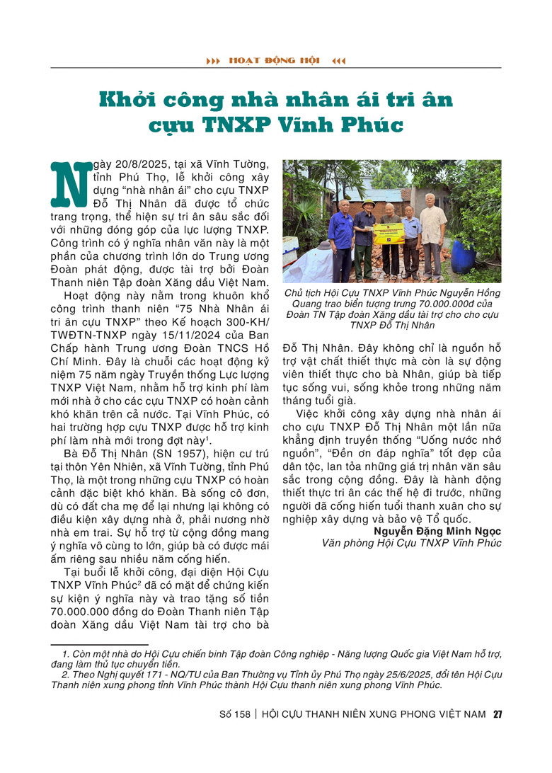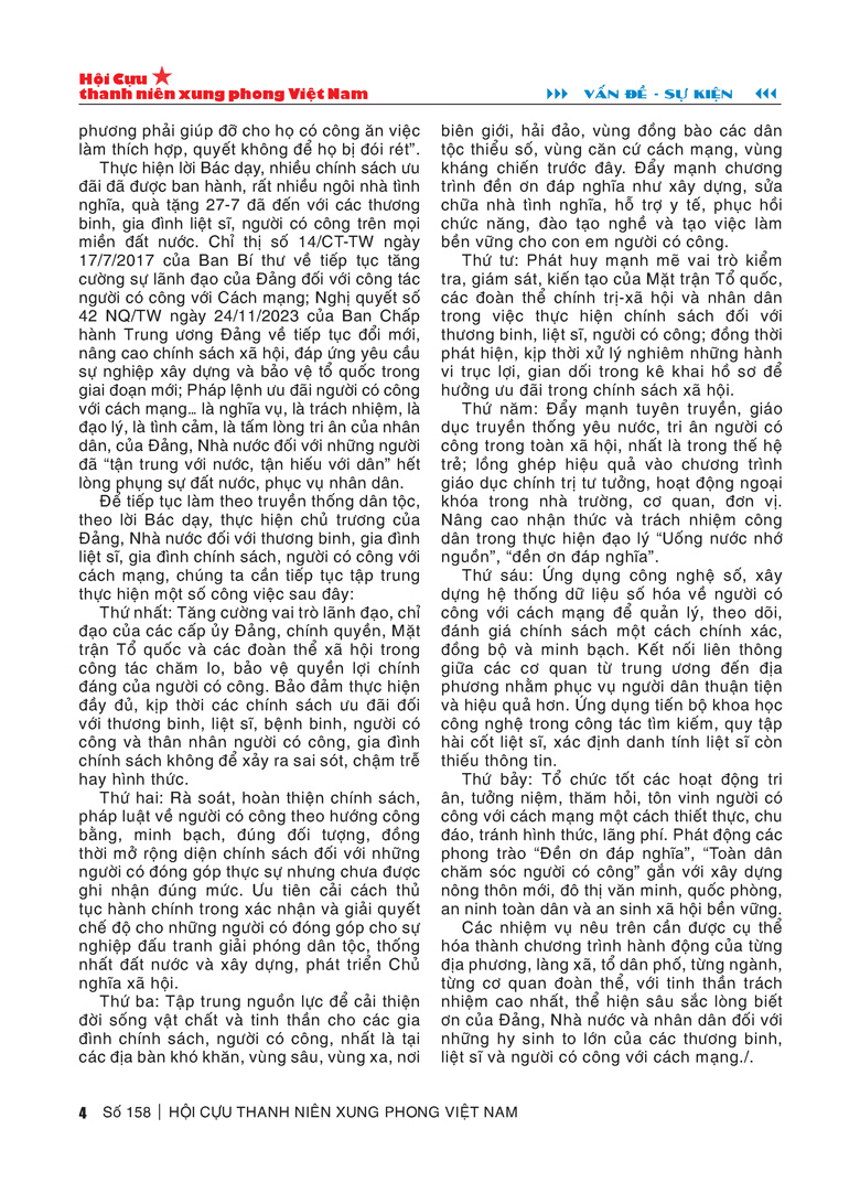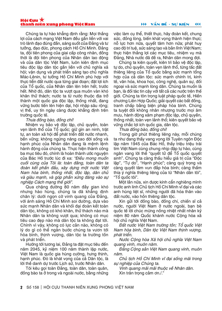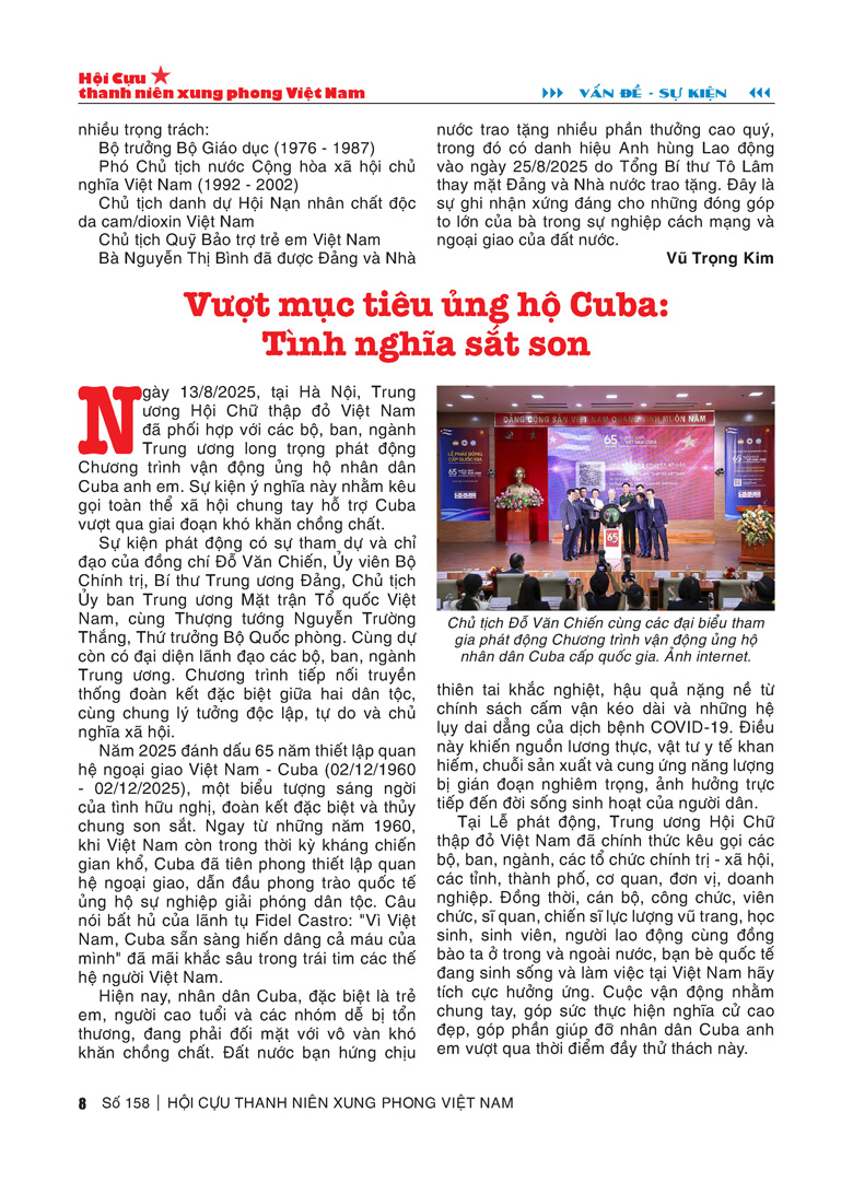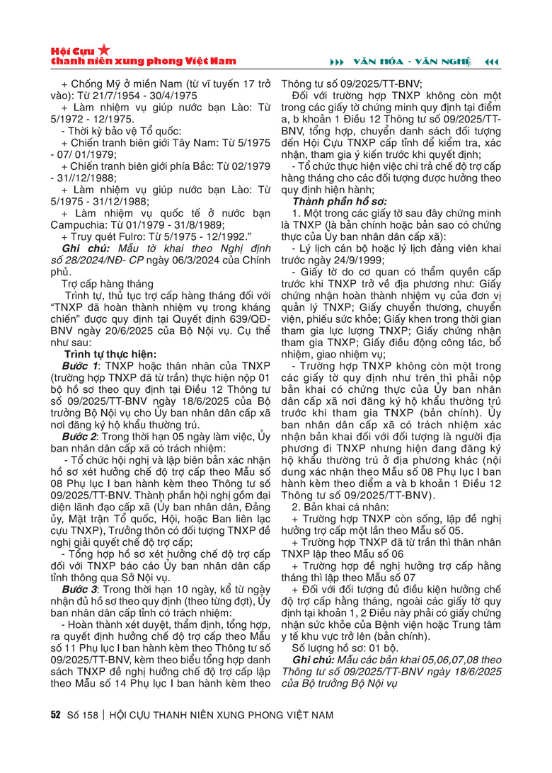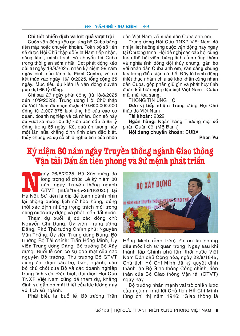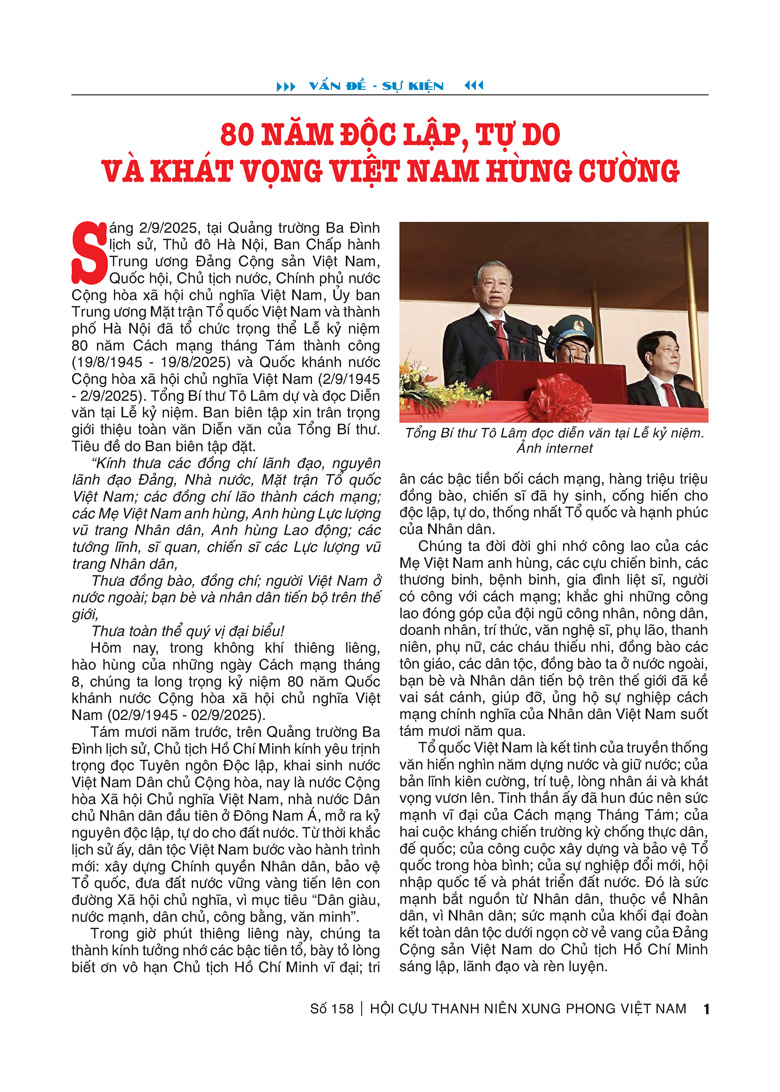 Bản tin Hội Cựu thanh niên xung phong Việt Nam số 158 (tháng 07+08/2025)