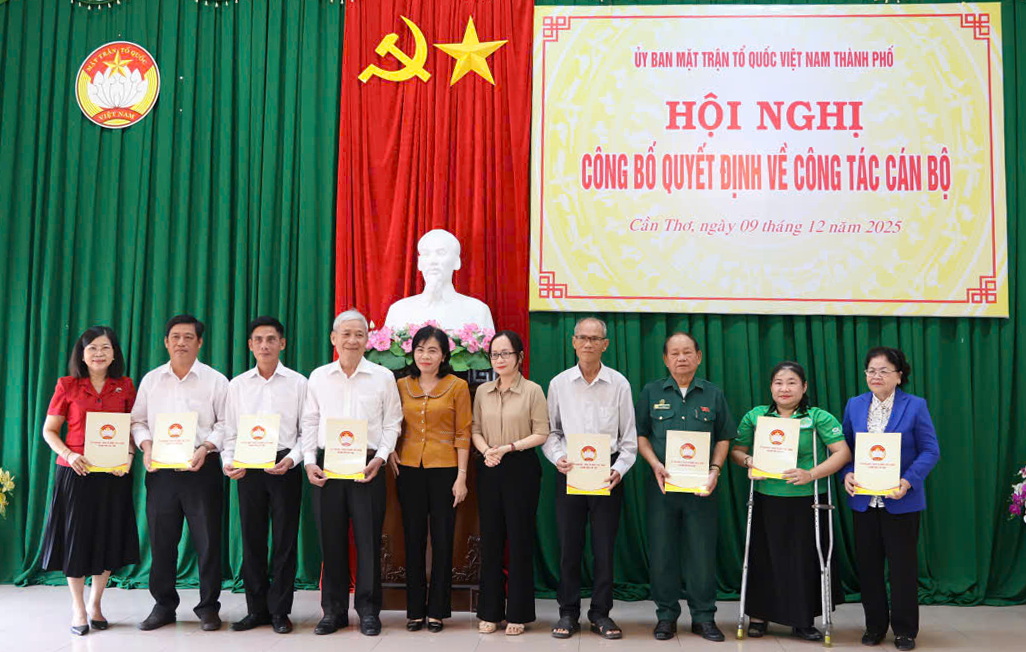 Ngày 9-12, Ủy ban Mặt trận Tổ quốc Việt Nam (MTTQVN) TP. Cần Thơ đã tổ chức Hội nghị công bố quyết định về công tác cán bộ, kiện toàn nhân sự lãnh đạo của 16 Hội do Đảng và Nhà nước giao nhiệm vụ. Đến dự và trực tiếp trao quyết định có bà Văn Ngọc Hà, Phó Trưởng Ban Tổ chức Thành ủy, và bà Nguyễn Thị Hồng Hạnh, Phó Giám đốc Sở Nội vụ.