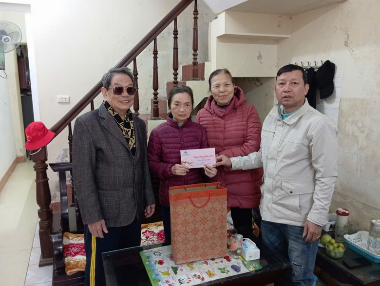 Tác giả (thứ 2 từ phải sang) cùng đồng đội N43 tặng quà Tết Xuân Bính Ngọ 2026 cho chị Lan – nguyên Chủ tịch Hội Cựu TNXP phường Tân Mai.