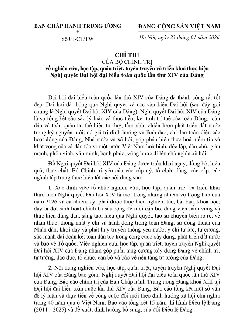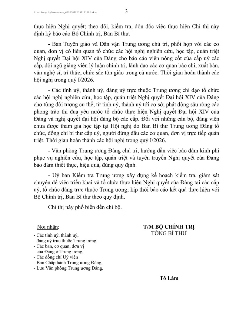 - Công văn 779 triển khai thực hiện Kết luận số 207-KL/TW của Ban Bí thư