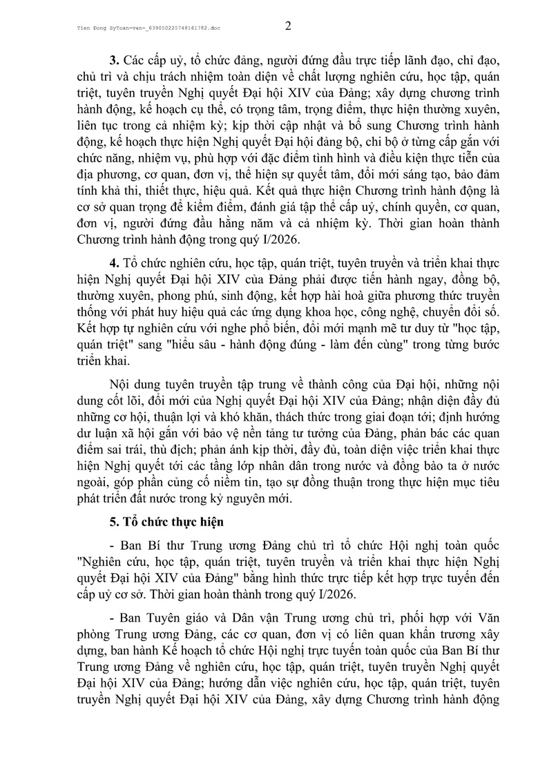 - Kế hoạch 08 triển khai, thực hiện Kết luận số 230-KL/TW