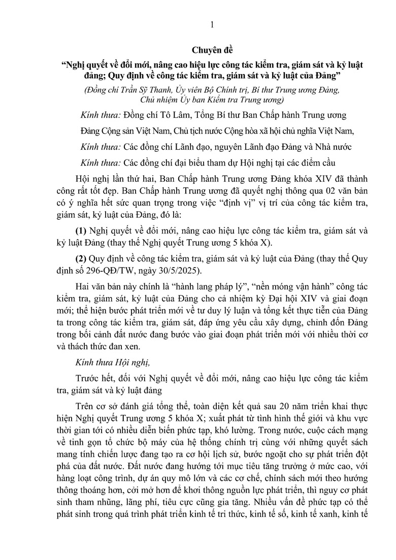 Chuyên đề “Nghị quyết về đổi mới, nâng cao hiệu lực công tác kiểm tra, giám sát và kỷ luật đảng; Quy định về công tác kiểm tra, giám sát và kỷ luật của Đảng”
