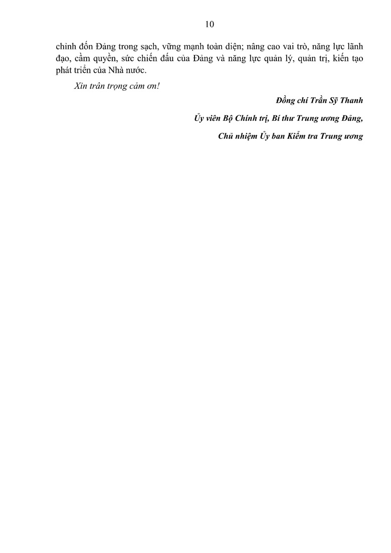 Đồng chí Trần Sỹ Thanh, Uỷ viên Bộ Chính trị, Bí thư Trung ương Đảng, Chủ nhiệm Uỷ ban Kiểm tra Trung ương giới thiệu chuyên đề “Nghị quyết về đổi mới, nâng cao hiệu lực công tác kiểm tra, giám sát và kỷ luật đảng; Quy định về công tác kiểm tra, giám sát và kỷ luật của Đảng”. Ảnh: Phương Hoa/TTXVN