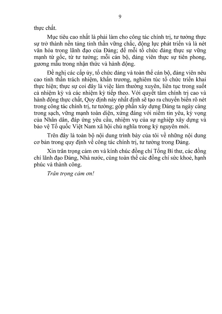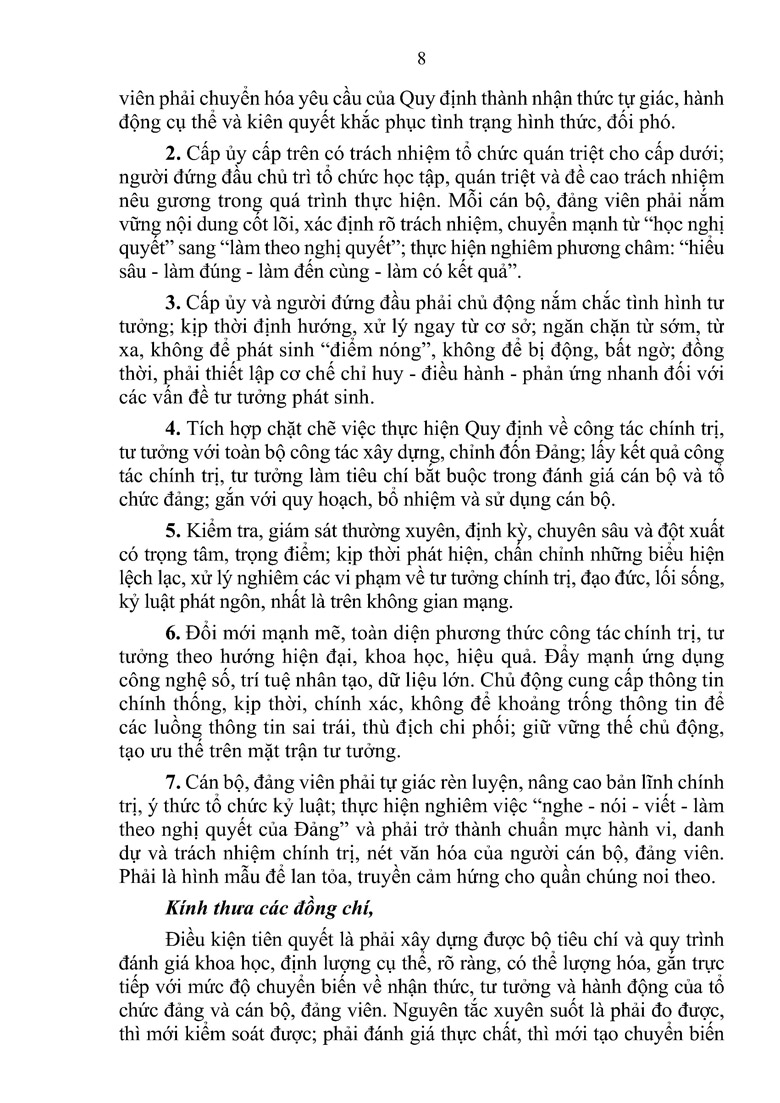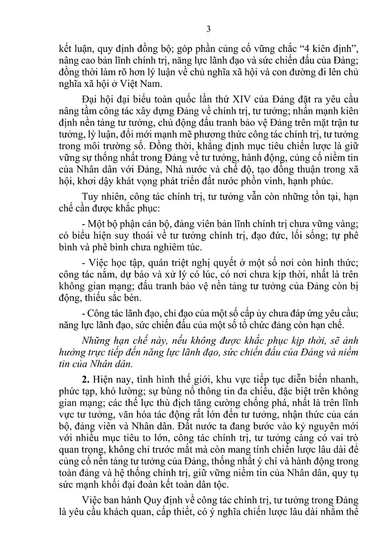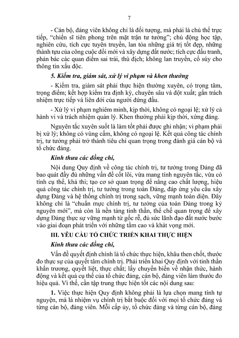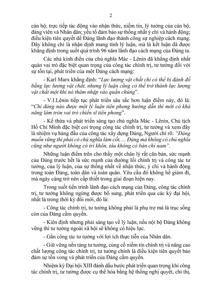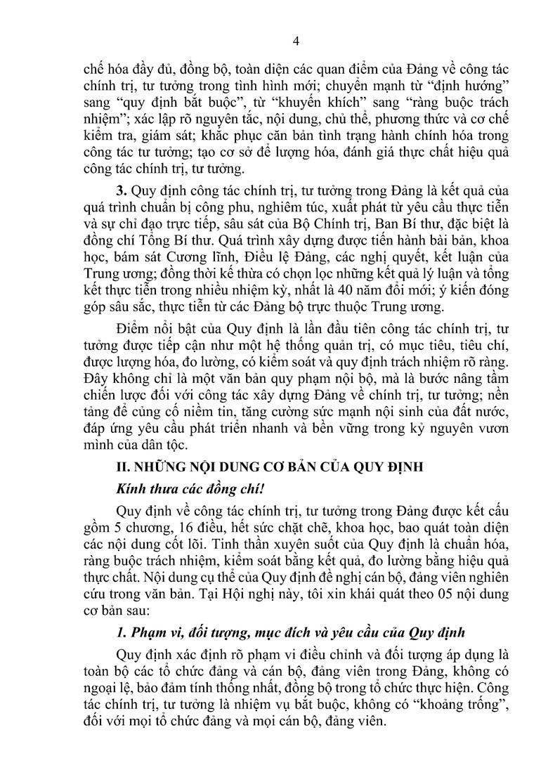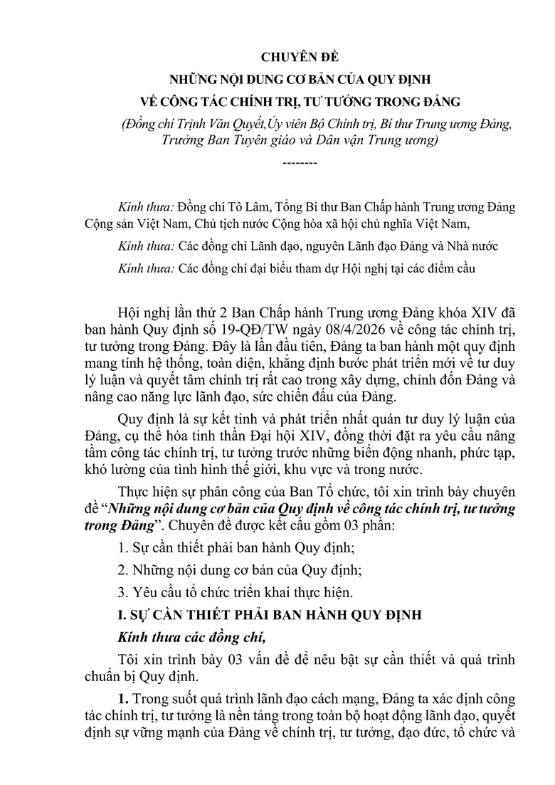 Chuyên đề “Những nội dung cơ bản của quy định về công tác chính trị, tư tưởng trong Đảng”