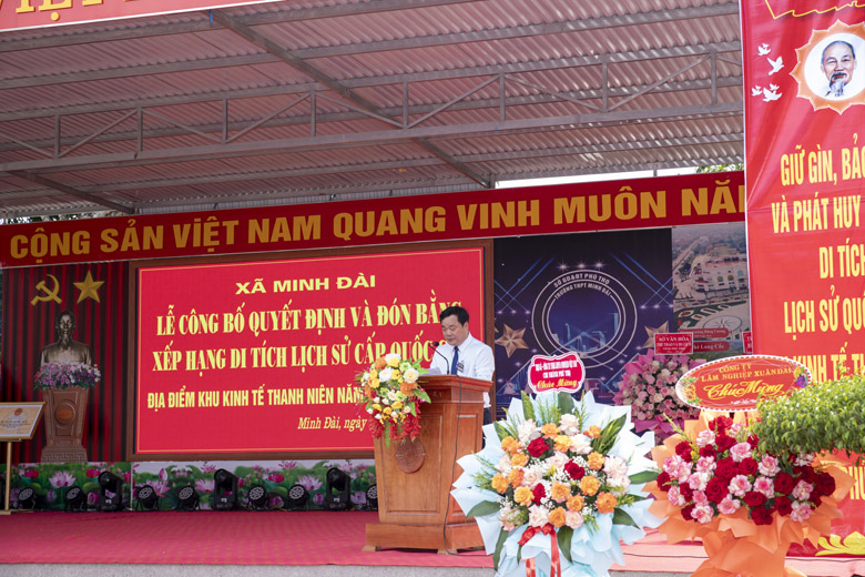 Phát biểu tại buổi lễ, đồng chí Phó Chủ tịch UBND tỉnh Phan Trọng Tấn (ảnh trên) khẳng định: Trong kháng chiến chống Mỹ, Khu Kinh tế Thanh niên Minh Đài được thành lập với sứ mệnh vừa là một mô hình kinh tế mới, vừa là một trường học thực tiễn lớn của thanh niên. Ngày nay, khu trở thành địa chỉ đỏ, là bài học sống động về lòng yêu nước, ý chí kiên cường và khát vọng cống hiến của tuổi trẻ Việt Nam. Việc di tích được vinh danh ở tầm quốc gia đã khẳng định giá trị lịch sử – văn hóa – giáo dục to lớn của Khu Kinh tế Thanh niên đối với các thế hệ hôm nay và mai sau.
