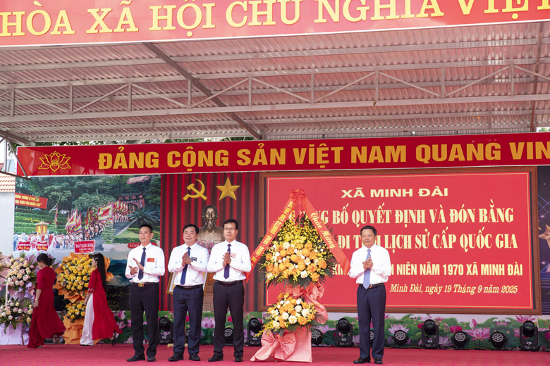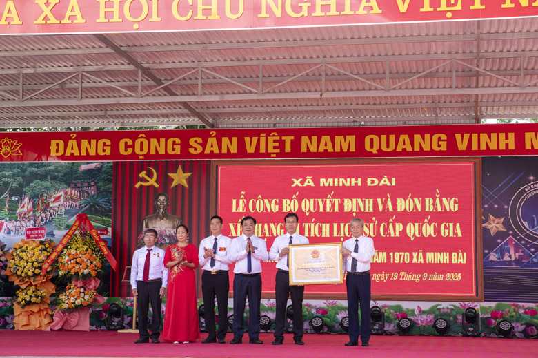 Tại buổi lễ, Phó Cục trưởng Cục Di sản văn hoá- Bộ VH, TT&DL Trần Đình Thành đã trao Bằng xếp hạng Di tích lịch sử Quốc gia cho Đảng bộ, chính quyền và Nhân dân xã Minh Đài.