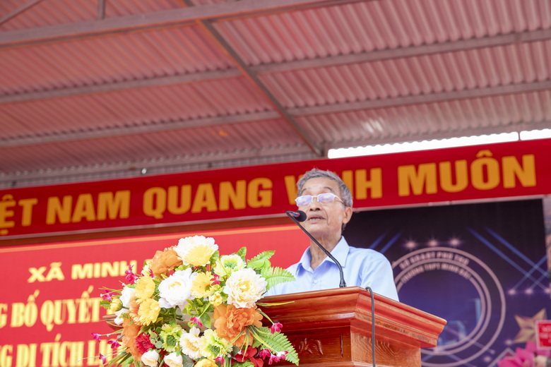 Phát biểu tại sự kiện, ông Nguyễn Đình Hiền (ảnh dưới), nguyên Bí thư Đảng ủy Khu Kinh tế thanh niên, đại diện các đồng chí cựu lãnh đạo, khẳng định đây không chỉ là niềm tự hào về quá khứ hào hùng mà còn là động lực mạnh mẽ cho sự phát triển trong tương lai của địa phương. Việc Minh Đài được công nhận là di tích lịch sử cấp quốc gia mang nhiều ý nghĩa chính trị và tinh thần sâu sắc. Đây là hoạt động thiết thực chào mừng Đại hội Đảng các cấp, hướng tới Đại hội lần thứ XIV của Đảng, thể hiện lòng biết ơn vô hạn đối với các thế hệ cha ông đã cống hiến xương máu cho sự nghiệp dựng nước và giữ nước. Nhờ công lao to lớn ấy, đất nước Việt Nam ngày nay đã có cơ đồ, tiềm lực, vị thế và uy tín quốc tế, với đời sống nhân dân không ngừng được nâng cao về cả vật chất lẫn tinh thần, đạt tới thời điểm chưa từng có trong lịch sử.