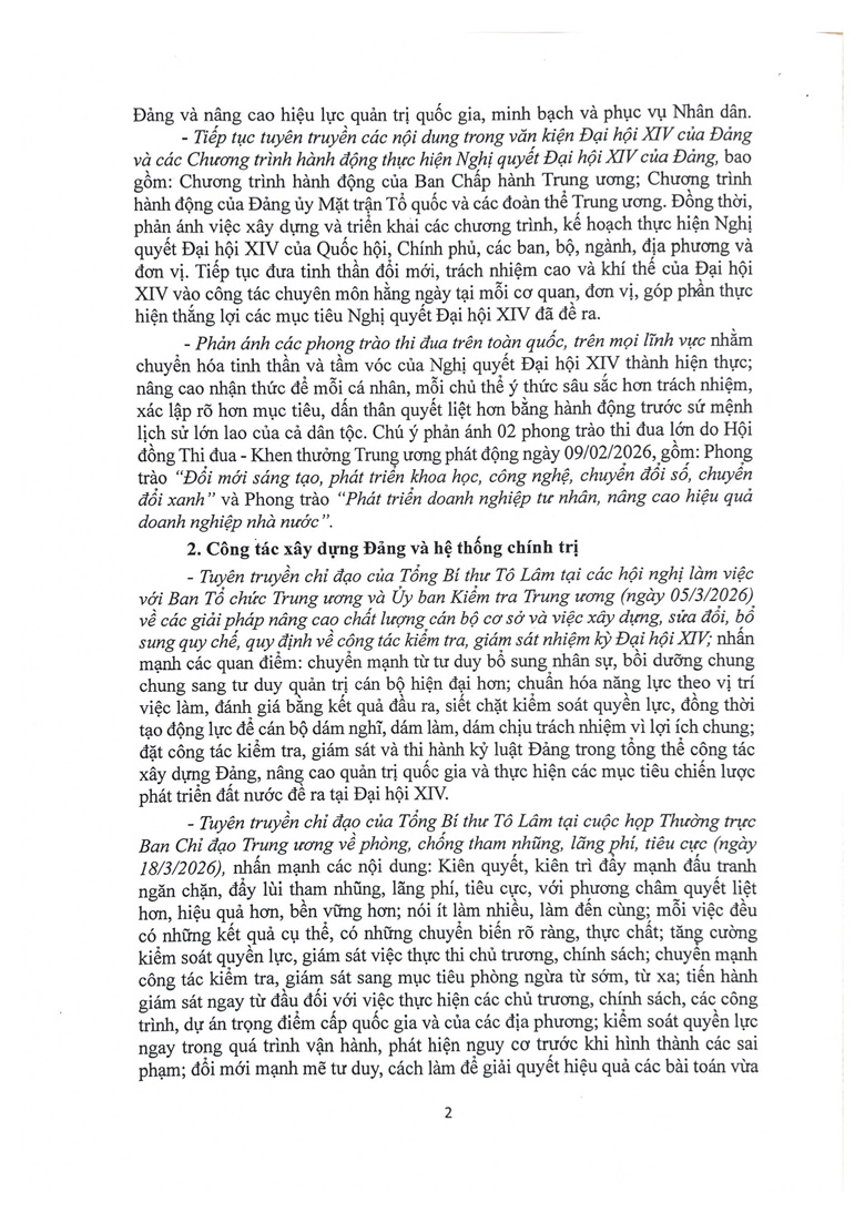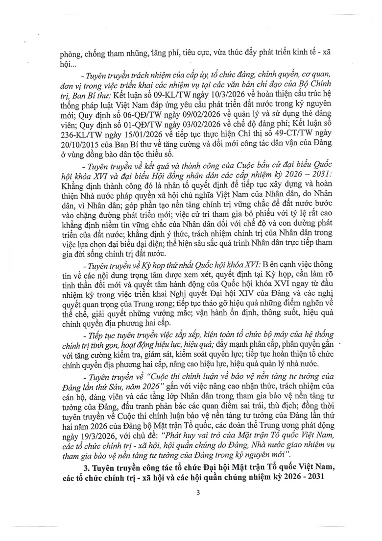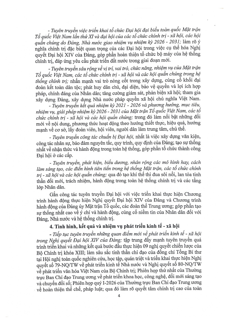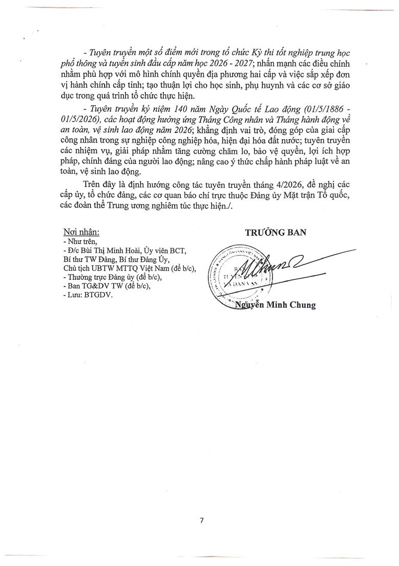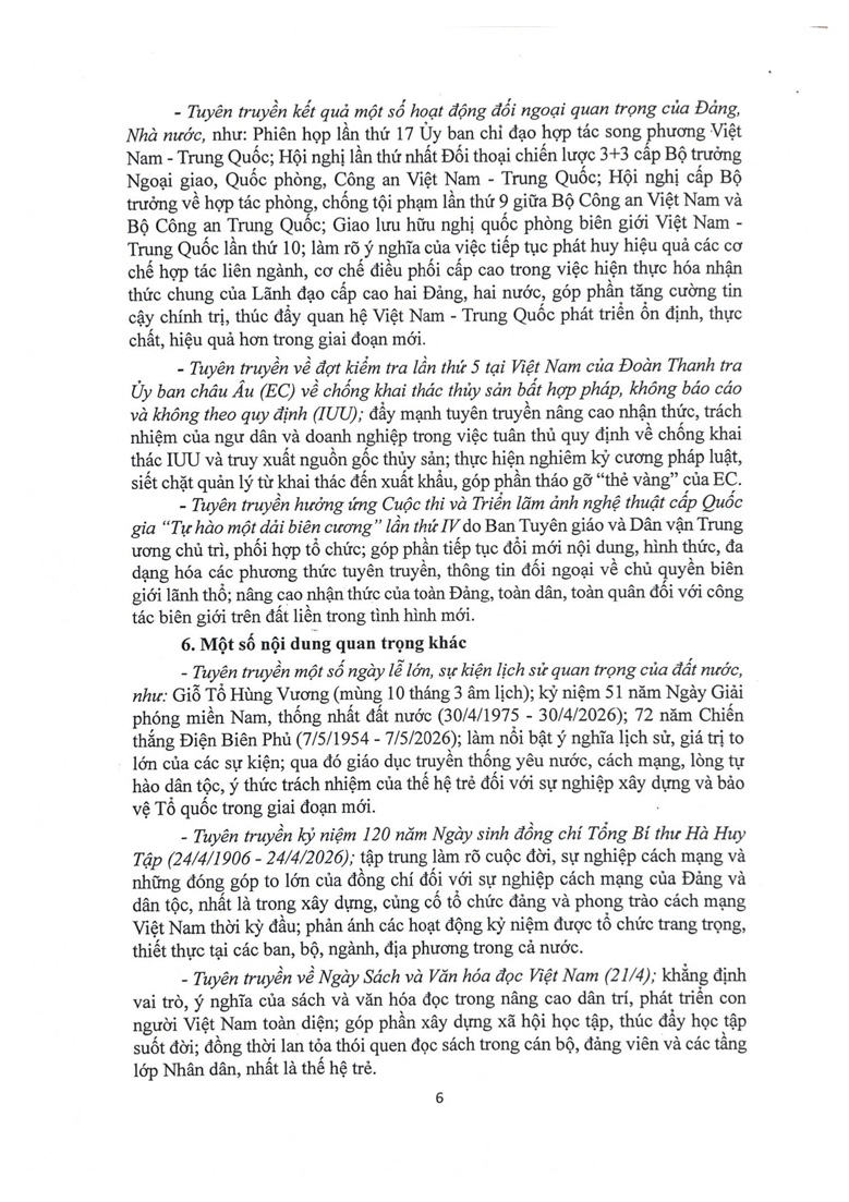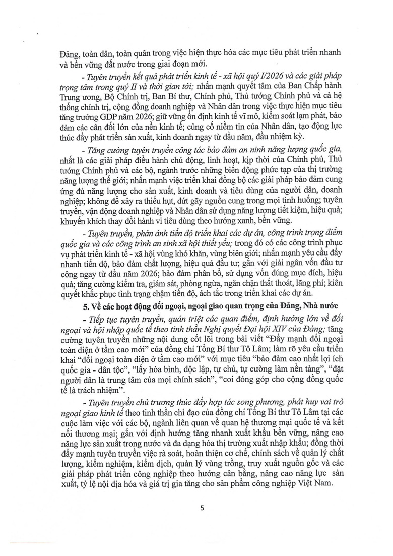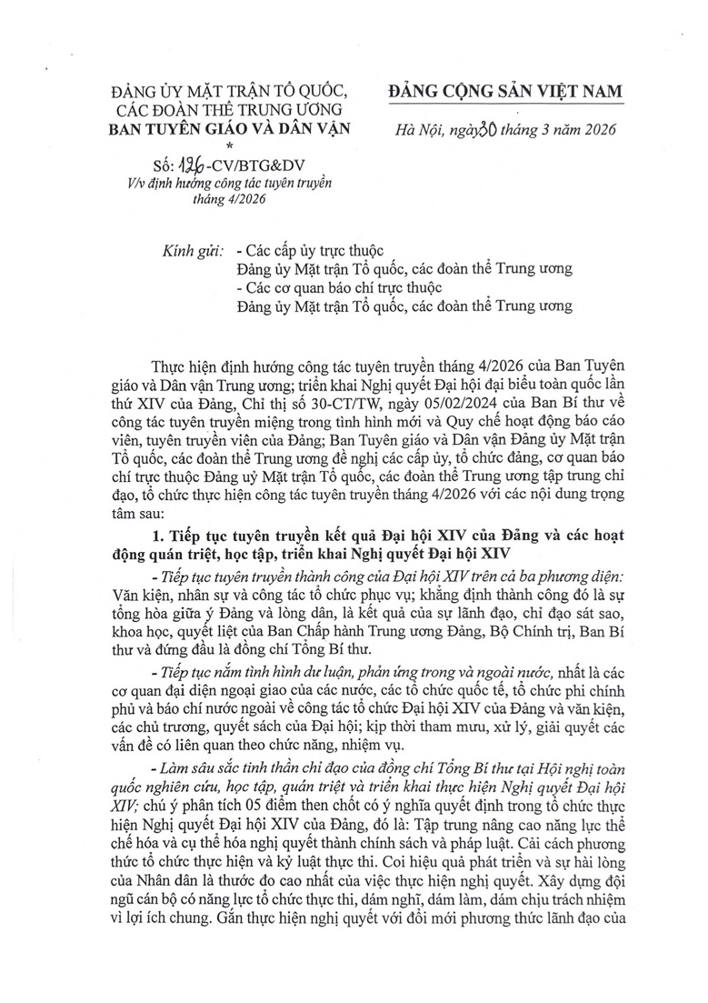 Công văn 126 định hướng công tác tuyên truyền tháng 4/2026
