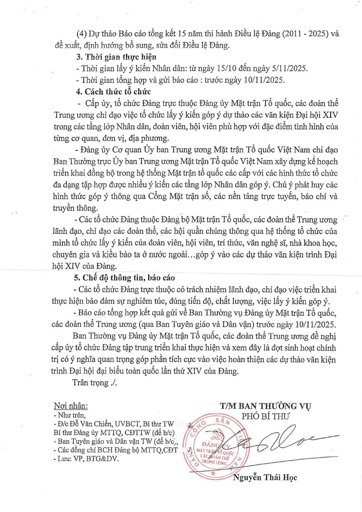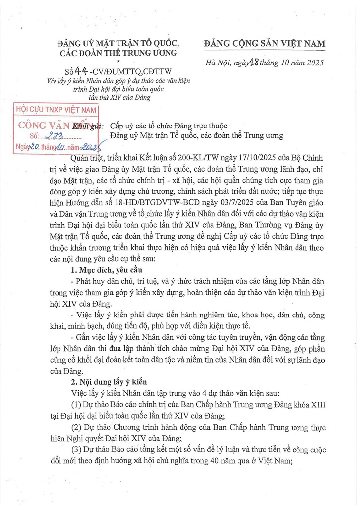 Công văn 44 về việc lấy ý kiến Nhân dân góp ý dự thảo các văn kiện trình Đại hội đại biểu toàn quốc lần thứ XIV của Đảng