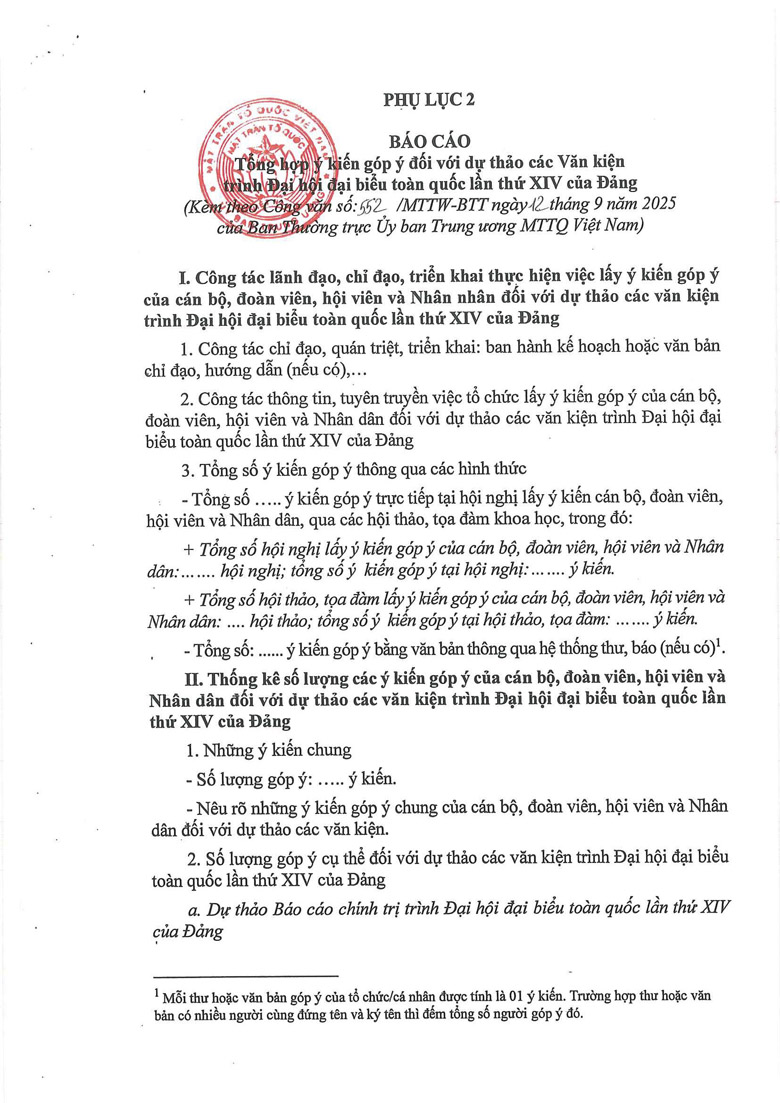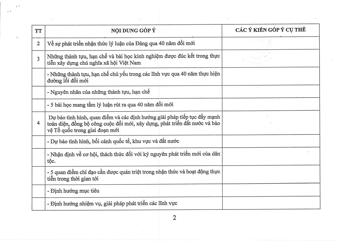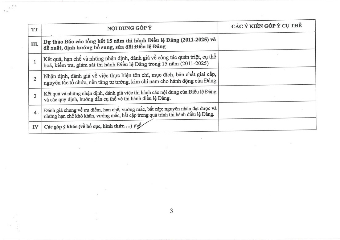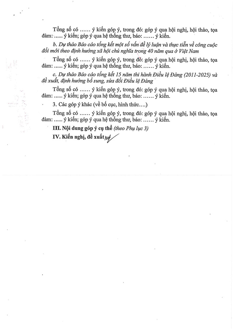 Công văn 552 điều chỉnh, bổ sung các nội dung hưỏng dẫn tổ chức lấy ý kiến, tổng hợp ý kiến góp ý vào dự thảo các văn kiện trinh Đại hội đại biểu toàn quốc lần thứ XIV của Đảng
