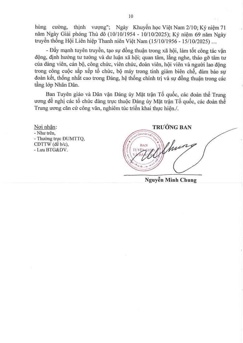 Công văn định hướng công tác tuyên truyền miệng tháng10/2025