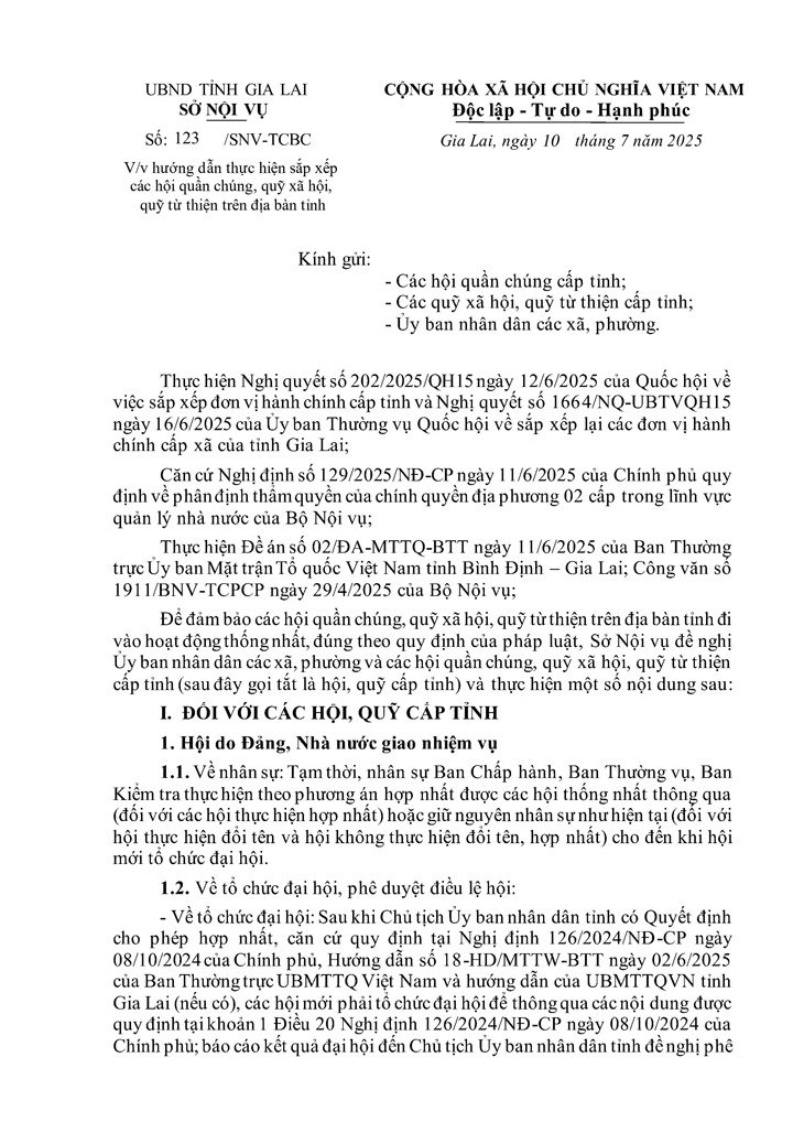 Công văn hướng dẫn thực hiện sắp xếp các hội quần chúng, quỹ xã hội, quỹ từ thiện trên địa bàn tỉnh Gia Lai