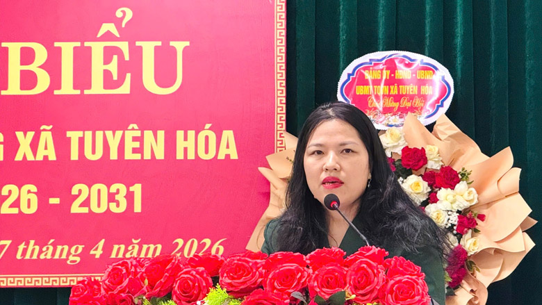 Phát biểu chỉ đạo tại Đại hội, đồng chí Lê Thị Thu Hồng (ảnh trên) đã biểu dương những nỗ lực vượt bậc của Hội Cựu TNXP xã Tuyên Hóa. Đồng chí nhấn mạnh: “Trong nhiệm kỳ mới, Hội cần tiếp tục đổi mới phương thức hoạt động, chú trọng công tác giáo dục truyền thống cho thế hệ trẻ và phát huy tối đa uy tín của lực lượng TNXP trong khối đại đoàn kết toàn dân.”