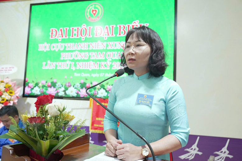 Phát biểu chỉ đạo tại Đại hội, các đồng chí Võ Văn Chiến (ảnh trên), Nguyễn Thị Nhung (ảnh dưới) ghi nhận, biểu dương những đóng góp tích cực của Hội trong việc giáo dục truyền thống cho thế hệ trẻ và công tác an sinh xã hội tại địa phương, đặc biệt là cuộc vận động “Toàn dân đoàn kết xây dựng nông thôn mới, đô thị văn minh”.
