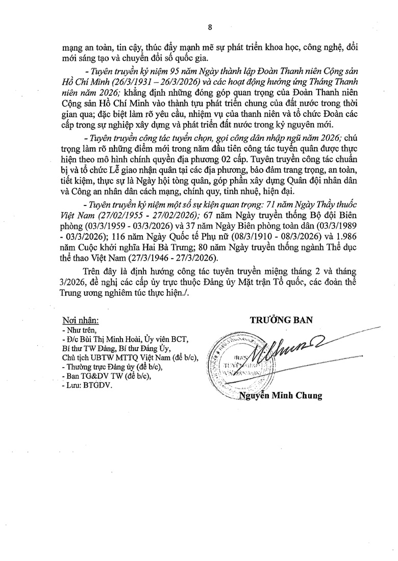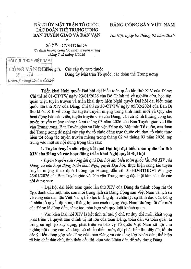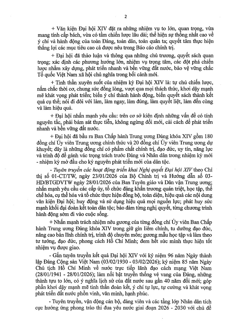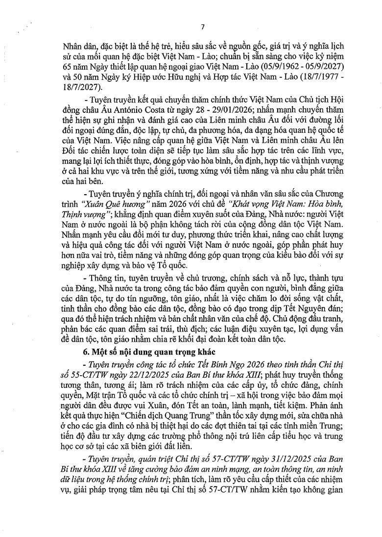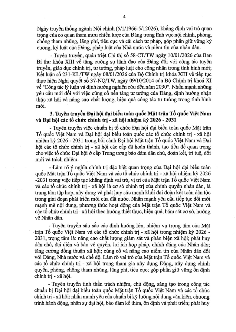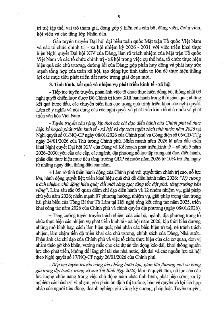Định hướng công tác tuyên truyền miệng tháng 2 và tháng 3/2026