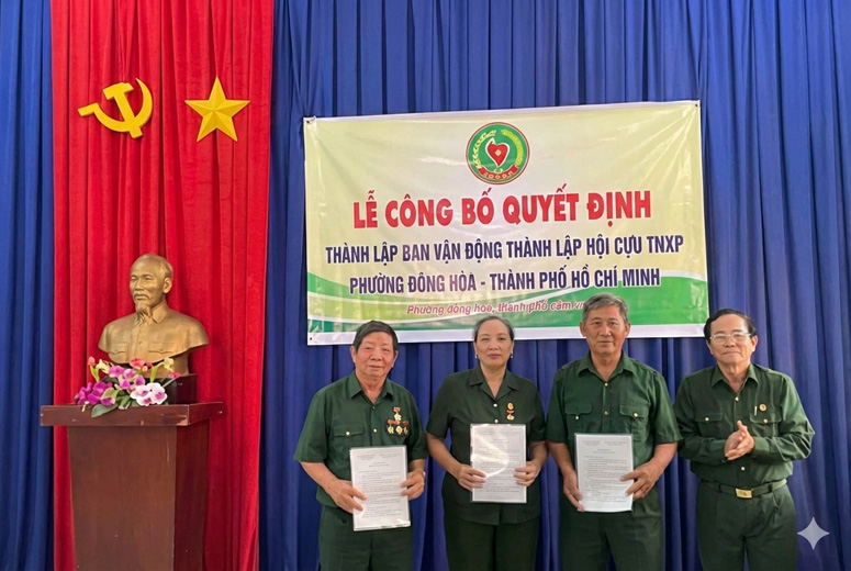 Sáng ngày 15/01/2026, tại Văn phòng Khu phố Tân Hòa, UBND phường Đông Hòa (TP.HCM) đã tổ chức Lễ công bố quyết định công nhận Ban vận động thành lập Hội Cựu TNXP địa phương.