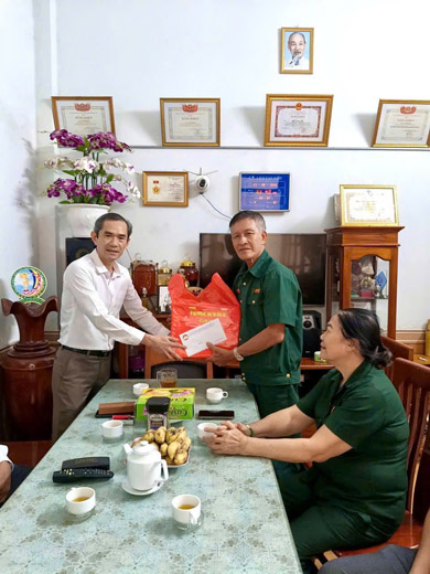 Đồng chí Nguyễn Tất Độ cùng đoàn thăm hỏi, tặng quà cho cựu TNXP Phan Thanh Hạ.