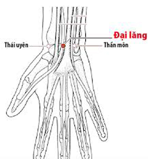 Huyệt Đại Lăng nằm ở giữa nếp gấp cổ tay, giữa gân cơ gan tay lớn và gan tay bé. Huyệt vị này có tác dụng điều hòa khí huyết, an thần, giúp giảm co cứng hiệu quả ở vùng ngực, vai và cổ. Khi kết hợp cứu ngải, hơi ấm từ ngải cứu sẽ giúp tăng cường tuần hoàn máu cục bộ, đưa dưỡng chất đến cơ và dây thần kinh, từ đó giảm rõ rệt cảm giác căng tức lan xuống tay.