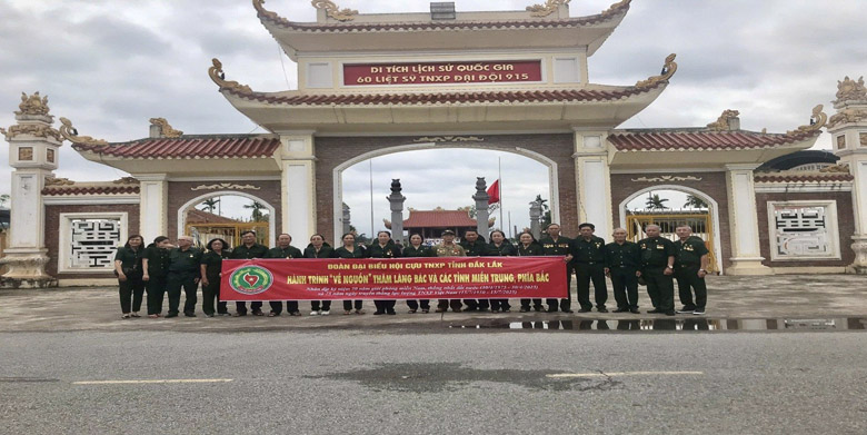 Chụp ảnh lưu niệm tại Di tích lịch sử Quốc gia 60 TNXP Đại đội 915, Đội 91 Bắc Thái – môt trong những hoạt động “về nguồn” do Tỉnh hội tổ chức