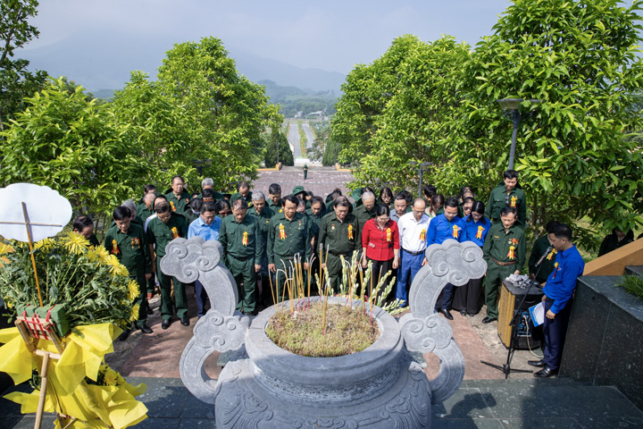 Đoàn cựu TNXP tiêu biểu các tỉnh miền Bắc dâng hương Di tích lịch sử Quốc gia Địa điểm thành lập Đội TNXP công tác Trung ương tại núi Hồng