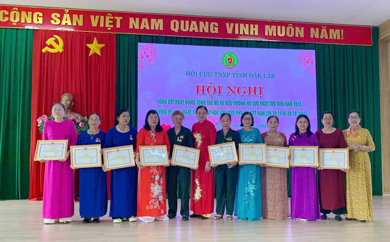 Nhân dịp này, Tỉnh hội đã vận động các nhà hảo tâm đóng góp 30 triệu đồng để trao tặng 50 suất quà cho nữ cựu TNXP cô đơn, không nơi nương tựa, có hoàn cảnh kinh tế đặc biệt khó khăn. Hội Cựu TNXP tỉnh cũng đã trao Giấy khen của Tỉnh hội cho 02 tập thể và 23 cá nhân nữ cựu TNXP đã có thành tích tiêu biểu xuất sắc trong phong trào công tác nữ năm 2025 (ảnh trên).