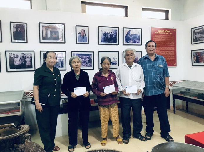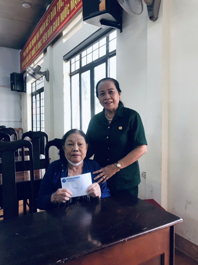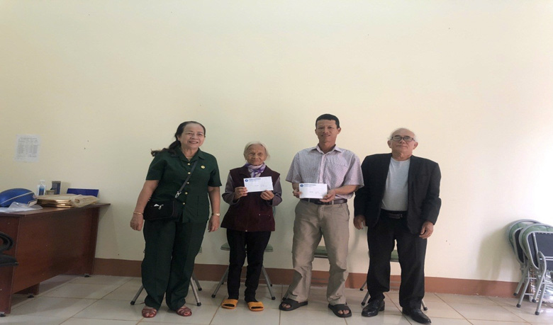 Phó Chủ tịch Tỉnh hội Đắk Lắk Đỗ Thị Dung (bìa trái) trao quà cho các thương, bệnh binh, nhiễm chất độc hóa học có hoàn cảnh kinh tế khó khăn.