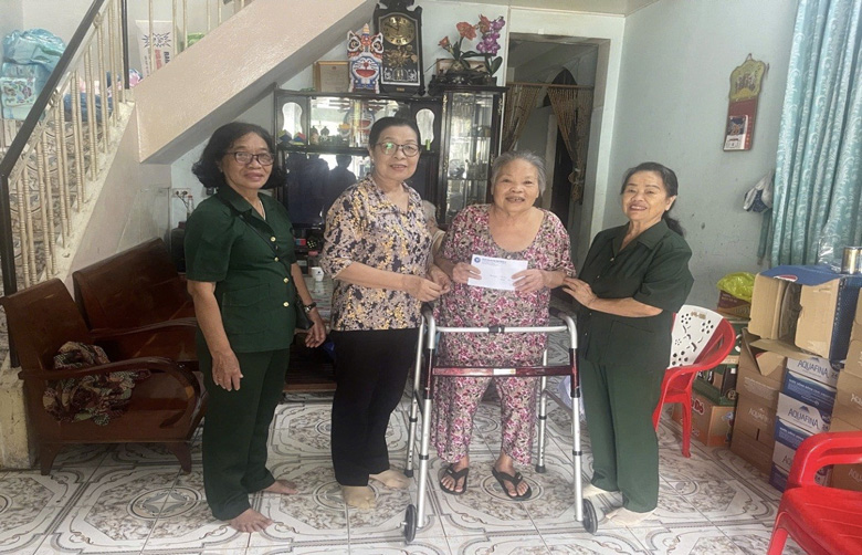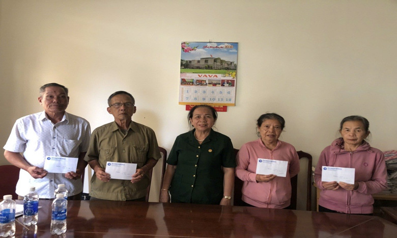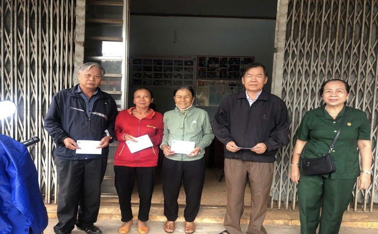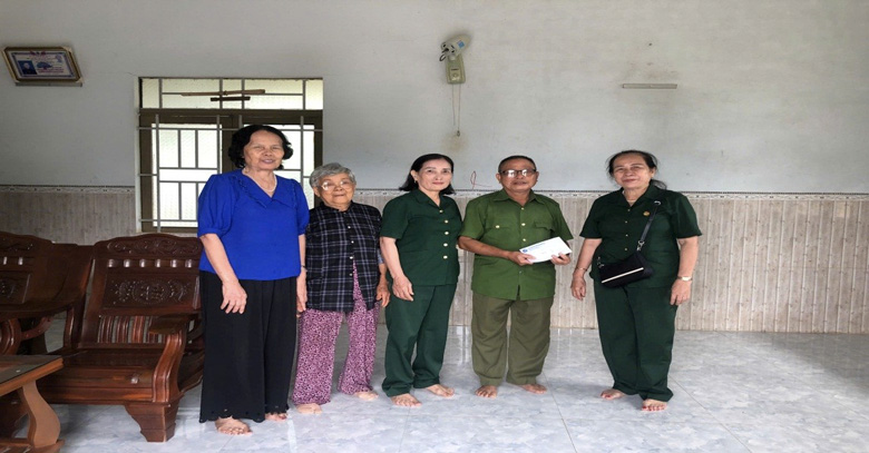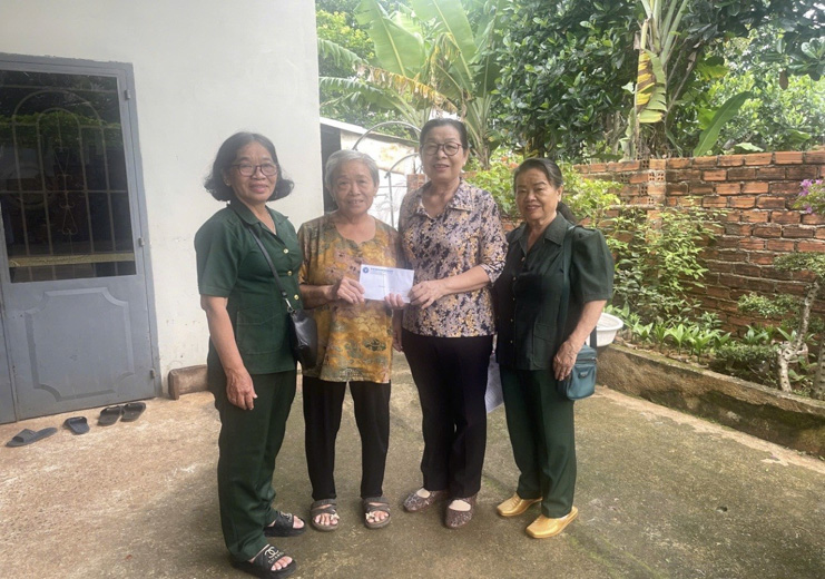 Phó Chủ tịch Tỉnh hội Đắk Lắk Đỗ Thị Dung (bìa trái) trao quà cho các thương, bệnh binh, nhiễm chất độc hóa học có hoàn cảnh kinh tế khó khăn.