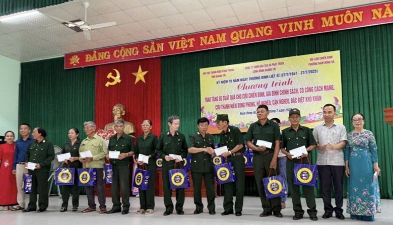 Ngày 19/7/2025, tại phường Đông Hà, Tỉnh hội đã phối hợp với các nhà tài trợ trao 163 phần quà (bao gồm 1 túi quà và 500.000đ tiền mặt) cho cựu TNXP có hoàn cảnh khó khăn (ảnh dưới).
