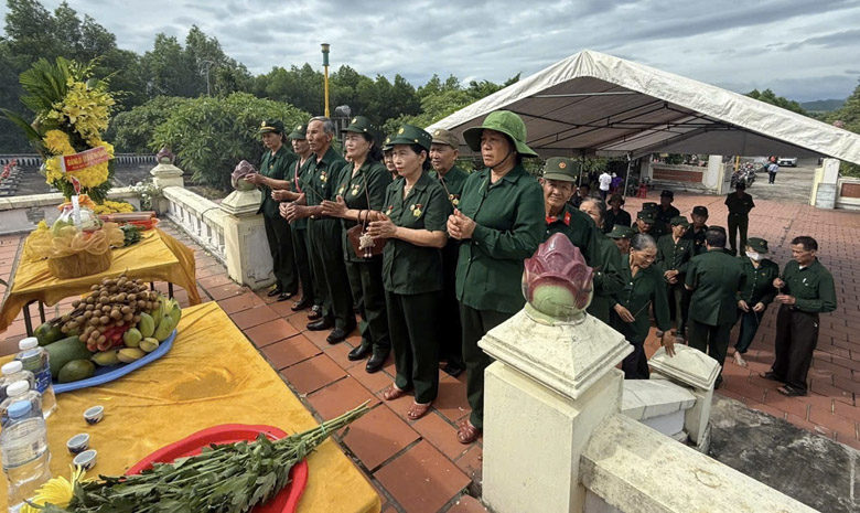 Thường trực Tỉnh hội và Tổng đội TNXP xây dựng kinh tế tỉnh dâng hương tại Đền tưởng niệm Liệt sỹ Trường Sơn, bến phà Long Đại.