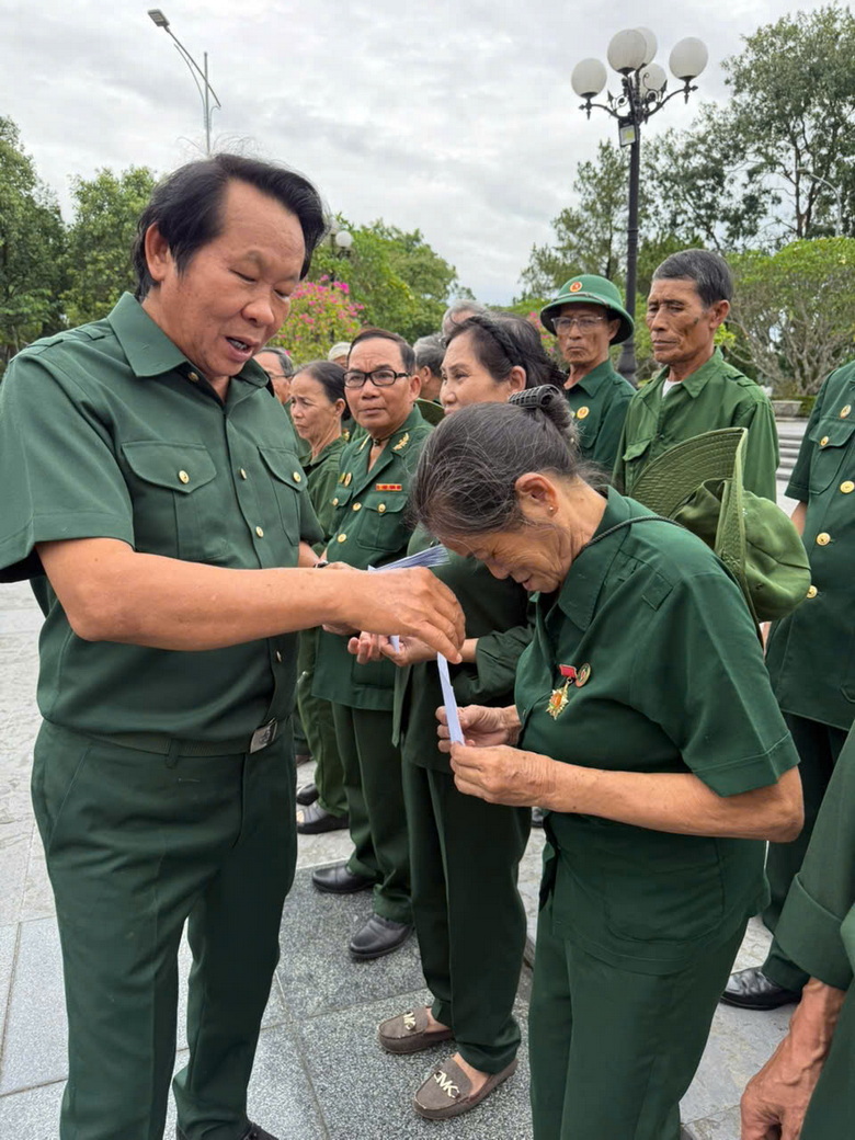 Đồng chí Thân Đức Nam tặng quà cho cựu TNXP.