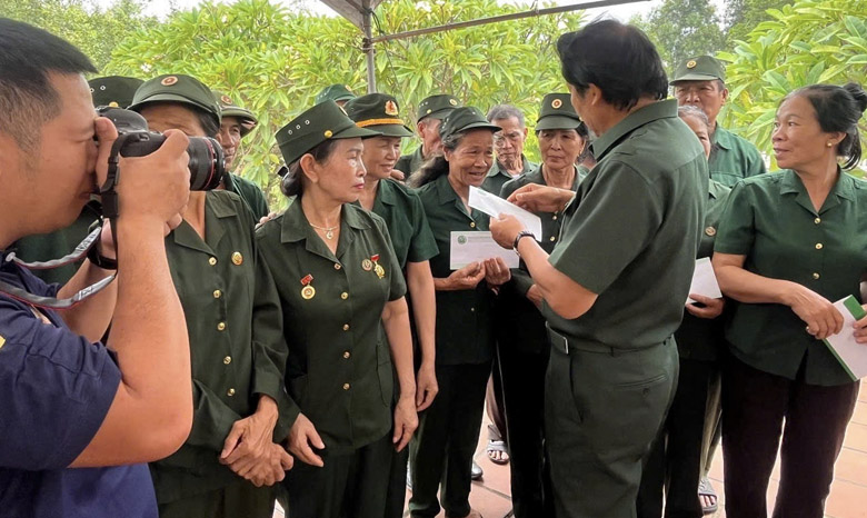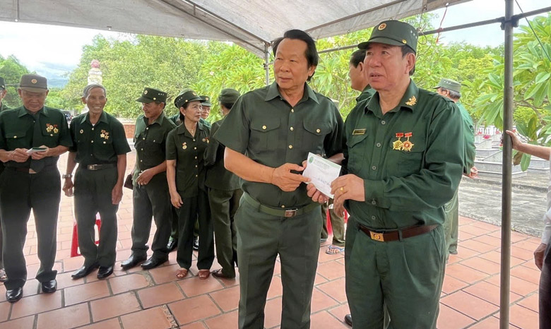 Đồng chí Thân Đức Nam tặng quà cho cựu TNXP.