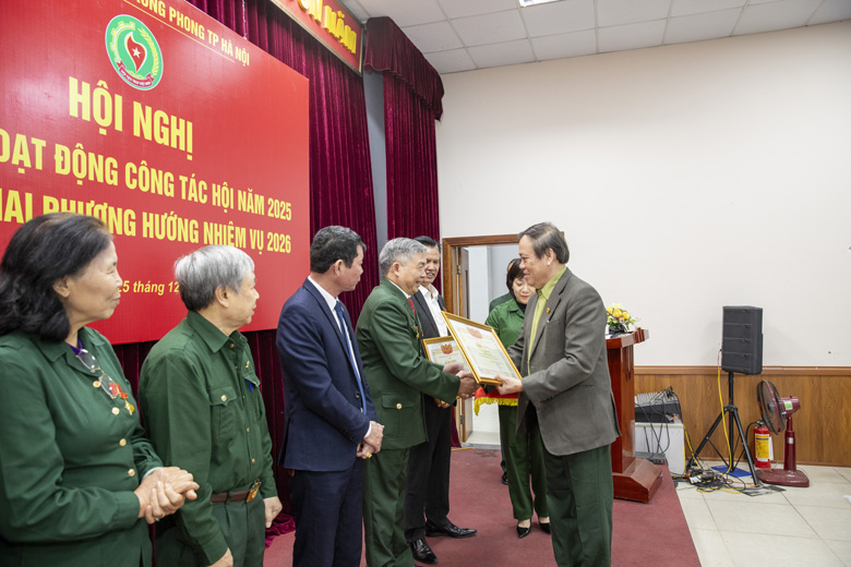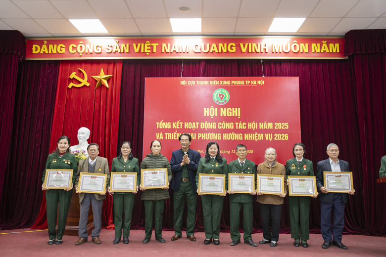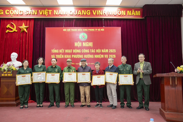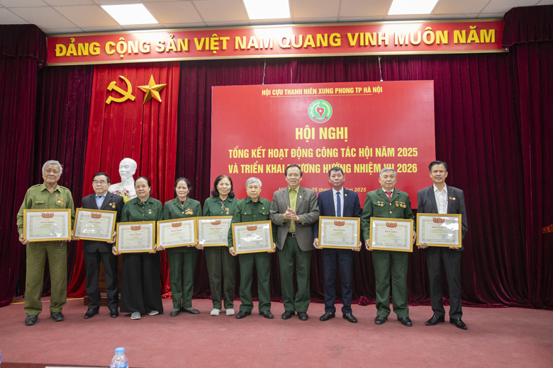 Tại hội nghị, Trung ương Hội Cựu TNXP Việt Nam và Thành hội Hà Nội đã trao tặng Bằng khen, Giấy khen cho các tập thể, cá nhân có thành tích xuất sắc trong công tác Hội năm 2025.